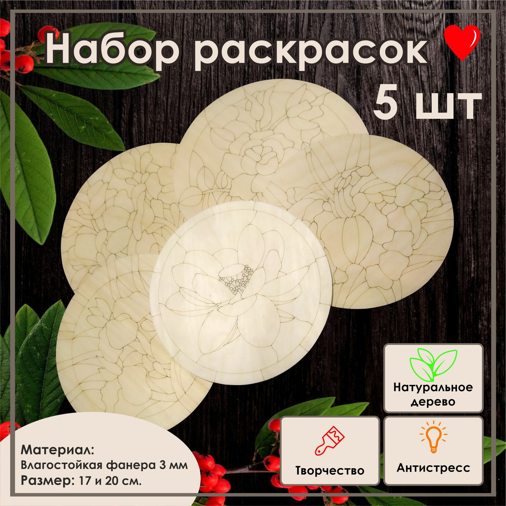 Набор деревянных раскрасок из 5 штук. Выполнен на березовой фанере. интересное: