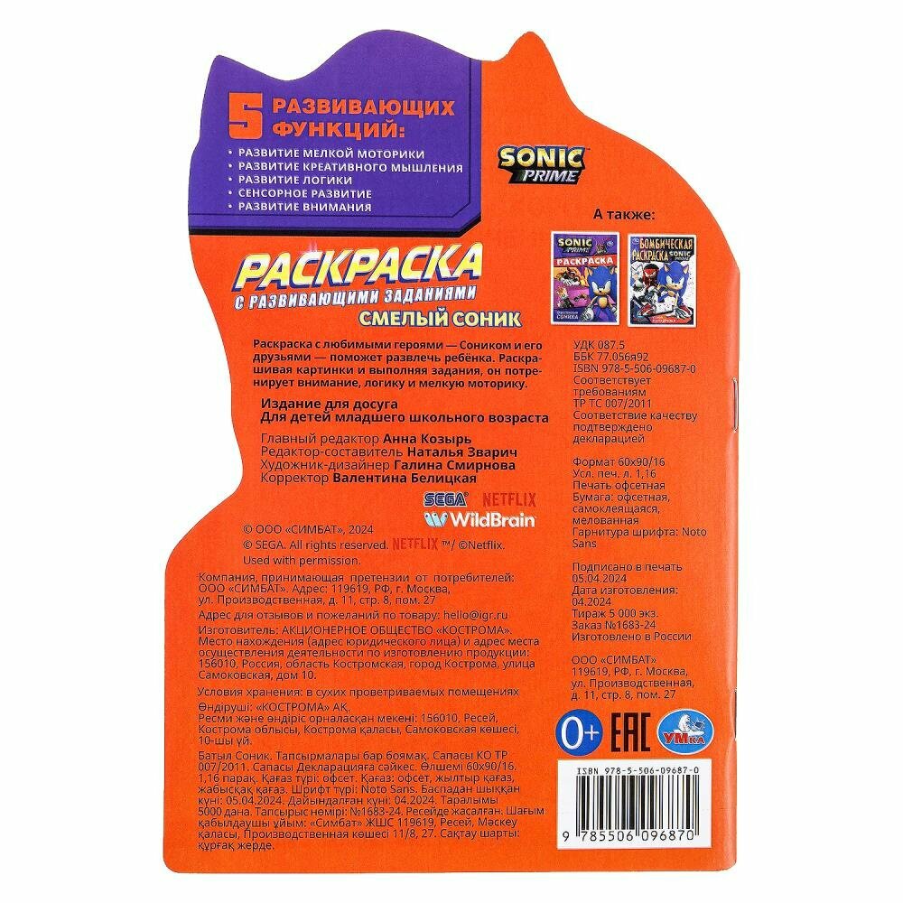 Купить Раскраска с развивающими заданиями "Смелый Соник" 16 стр. УМка 978-5-506-09687-0