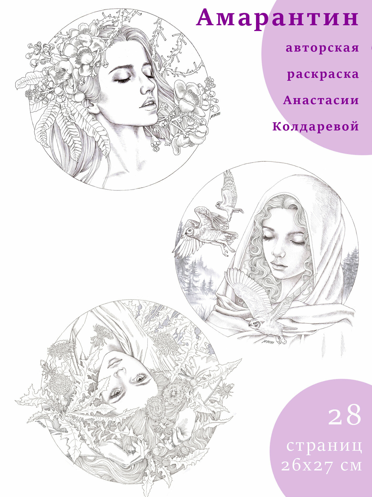 Купить Раскраска-антистресс "Амарантин", Анастасия Колдарева, 27 x 26 см, 28 иллюстраций