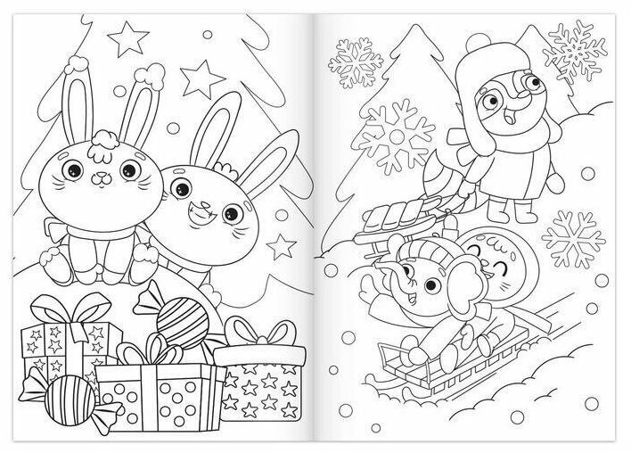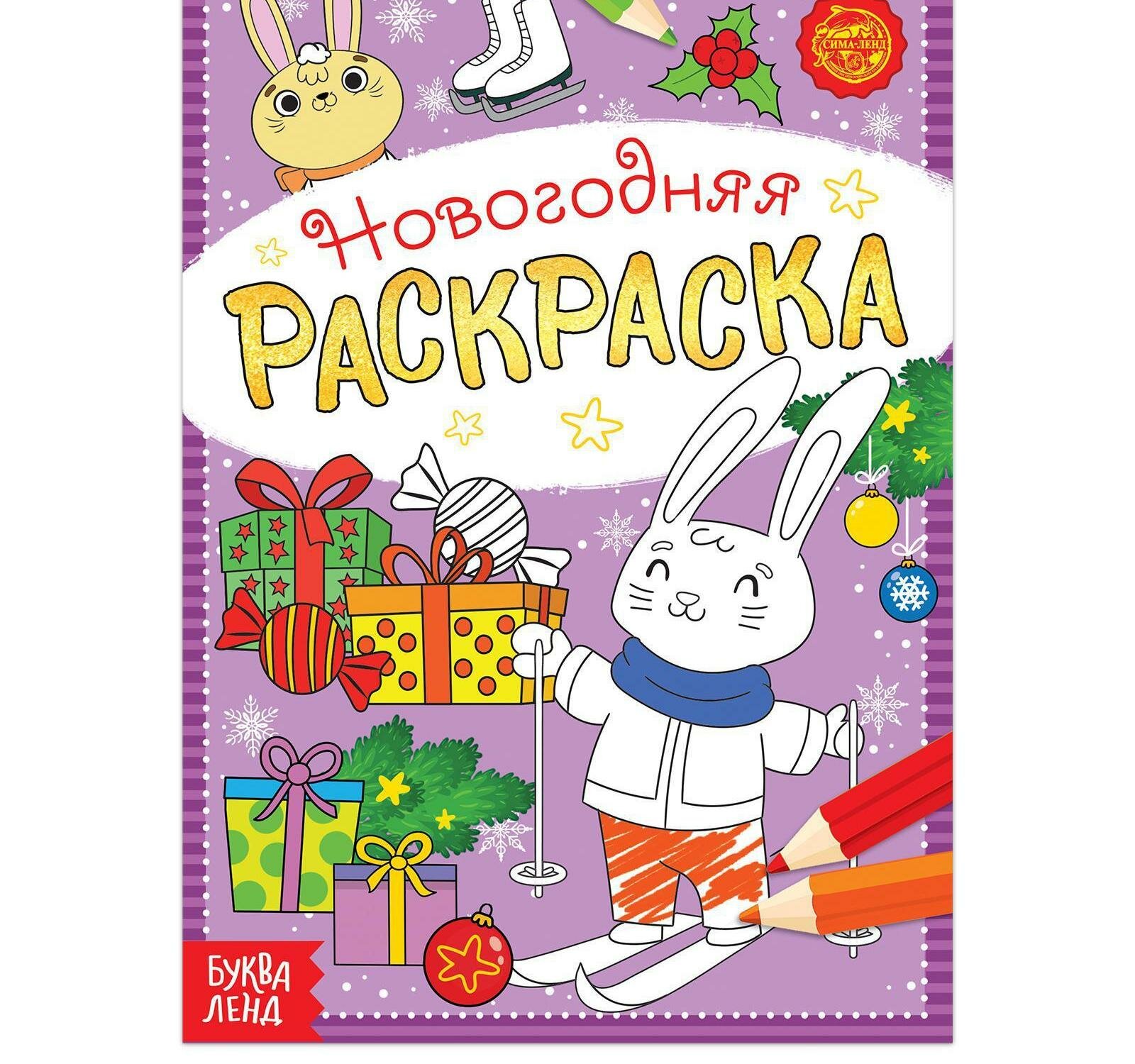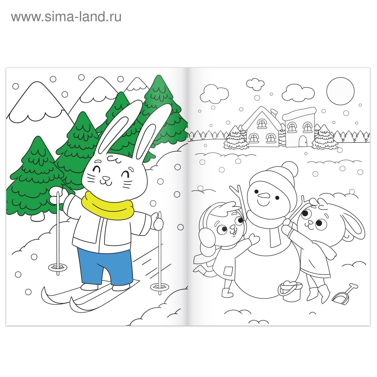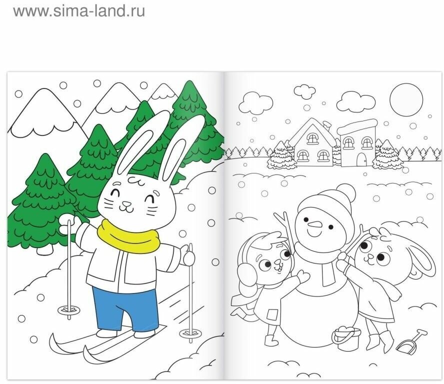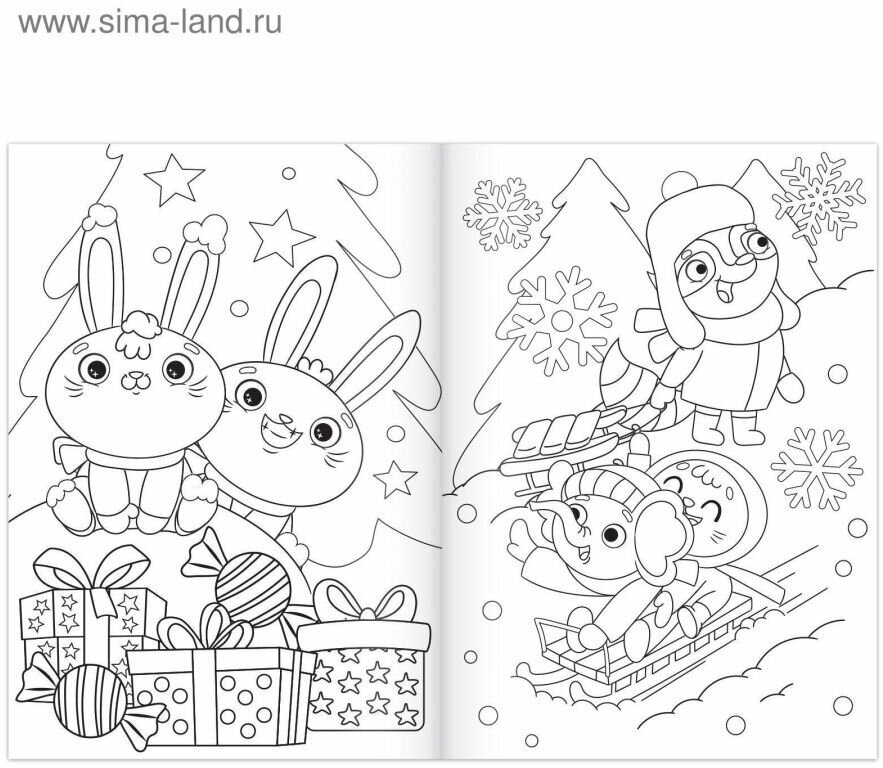 Купить Раскраска новогодняя "Зайчата", 12 стр.