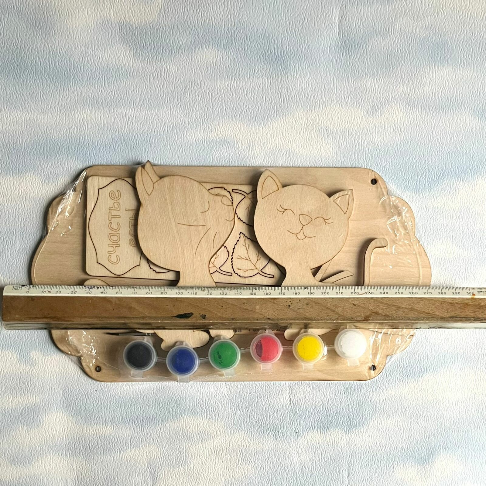 Раскраска из дерева Счастье есть! Два кота. Панно из фанеры, деревянная 3D раскраска Котики интересное:
