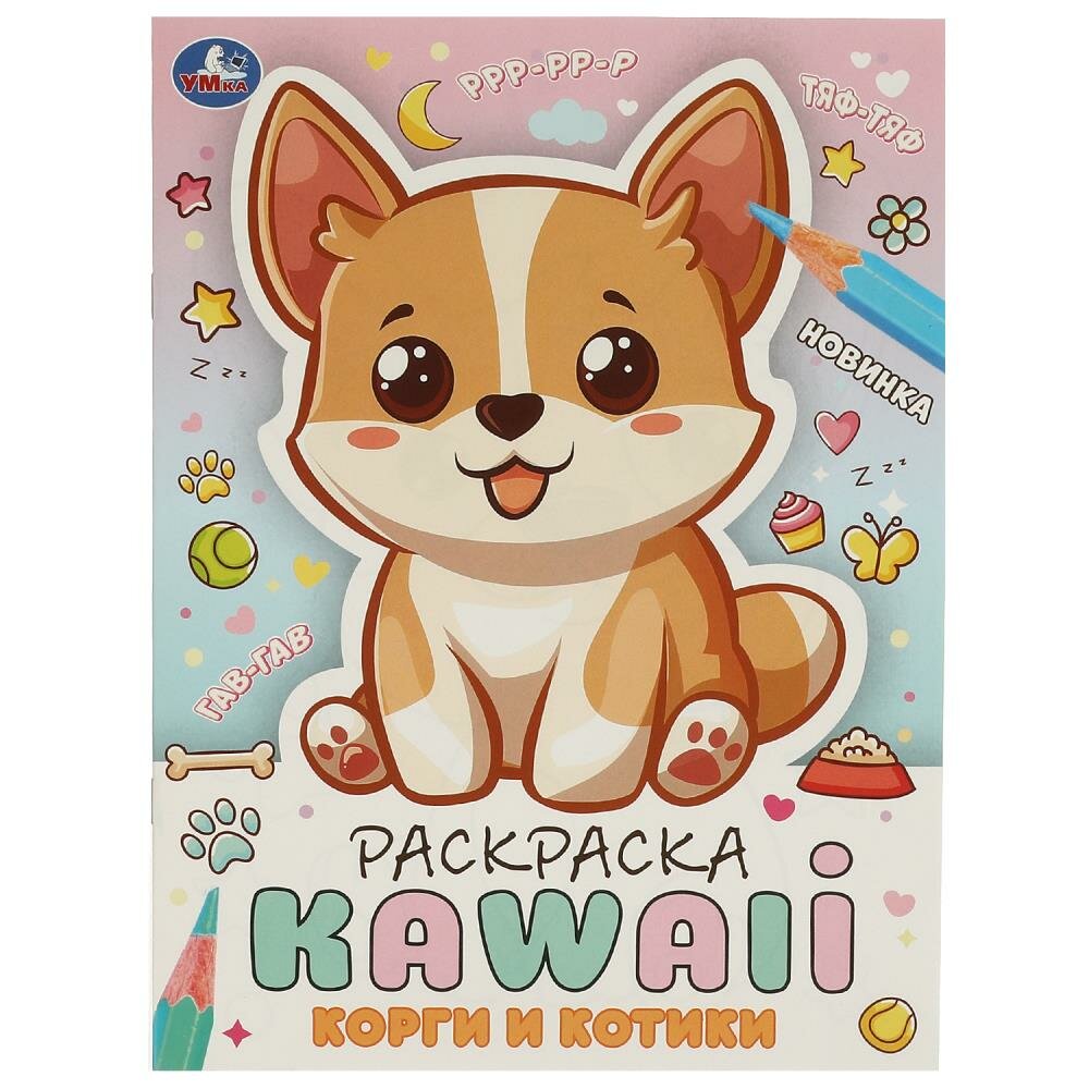 Купить Раскраска каваная "Корги и Котики" 21х29 см. 16 стр. УМка 978-5-506-09711-2