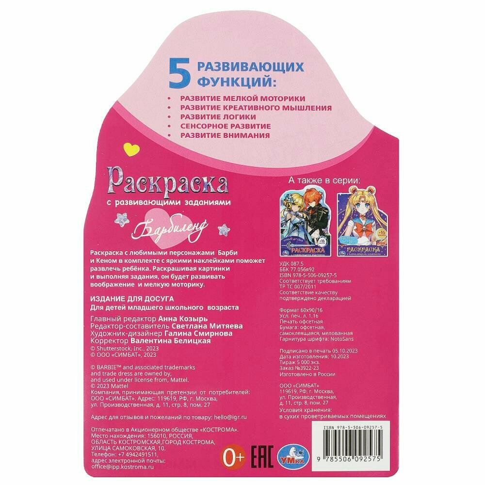 Раскраска с развивающими заданиями Барбиленд. Барби Умка 978-5-506-09257-5 интересное:
