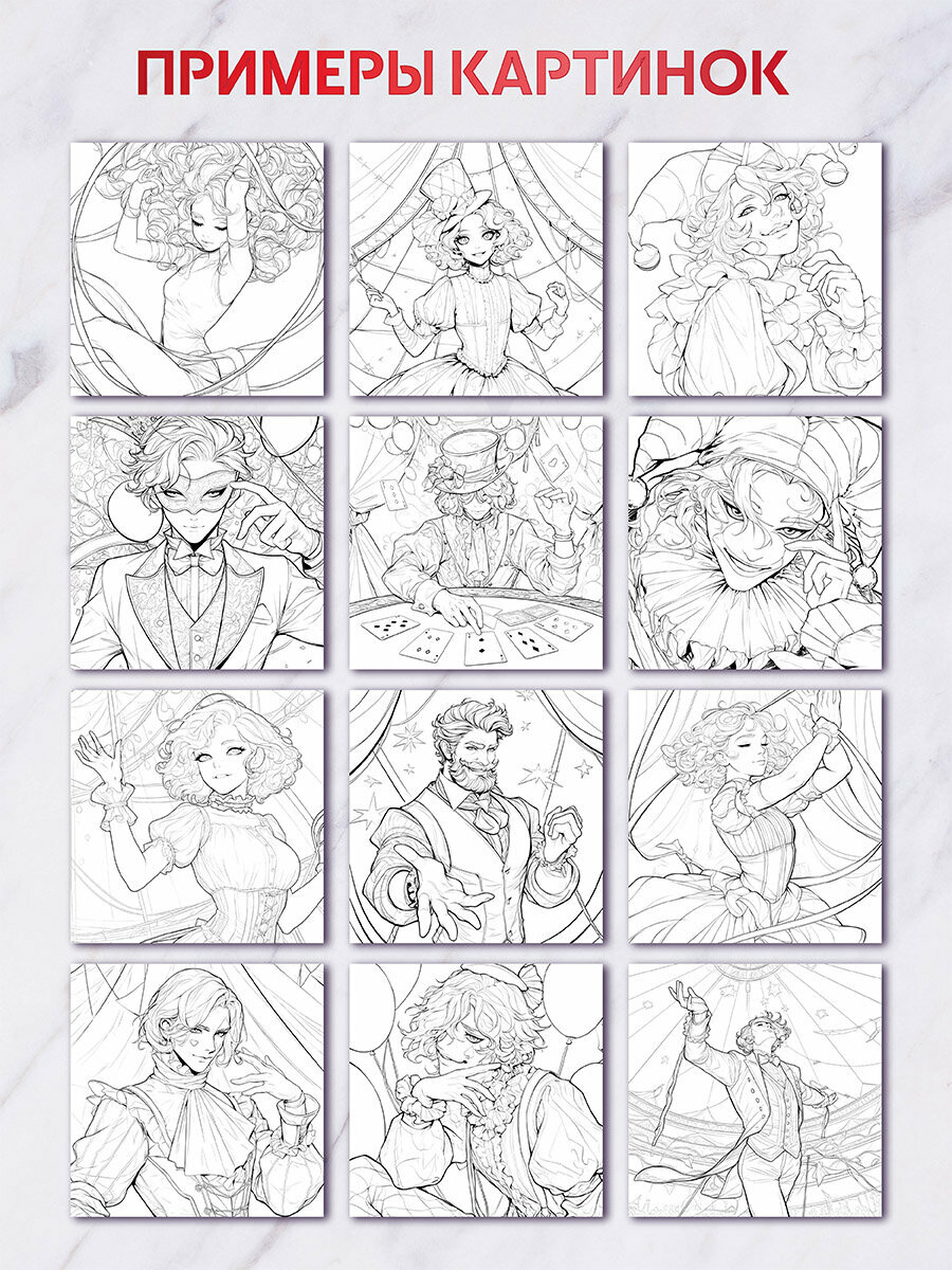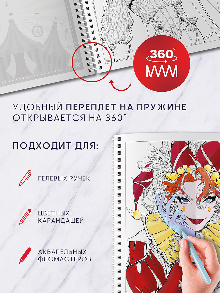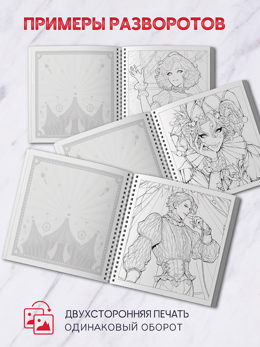 Раскраска "Цирк. Представление начинается", от 12 лет, двусторонняя интересное:
