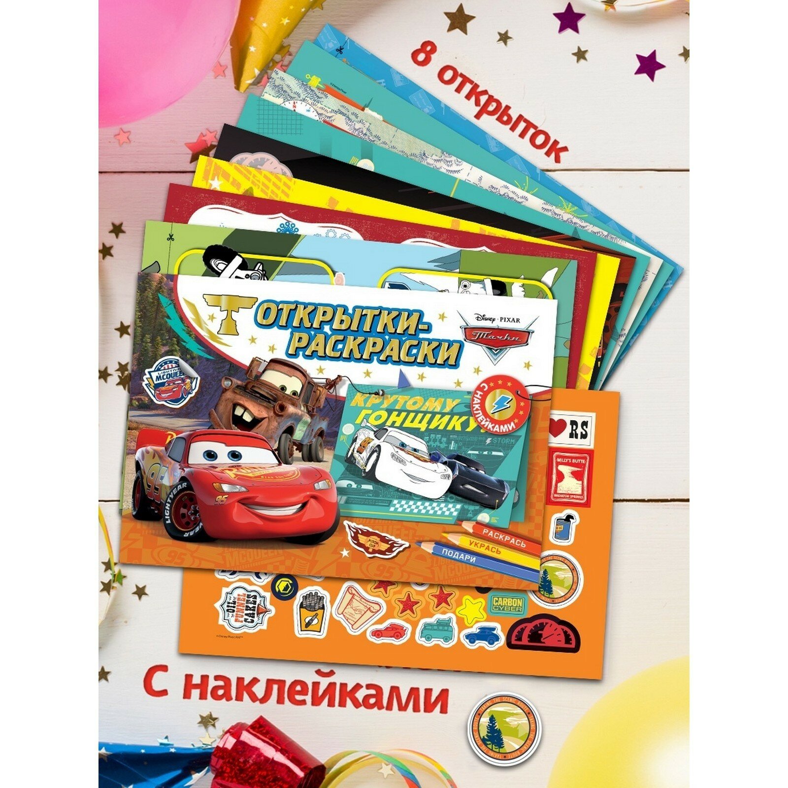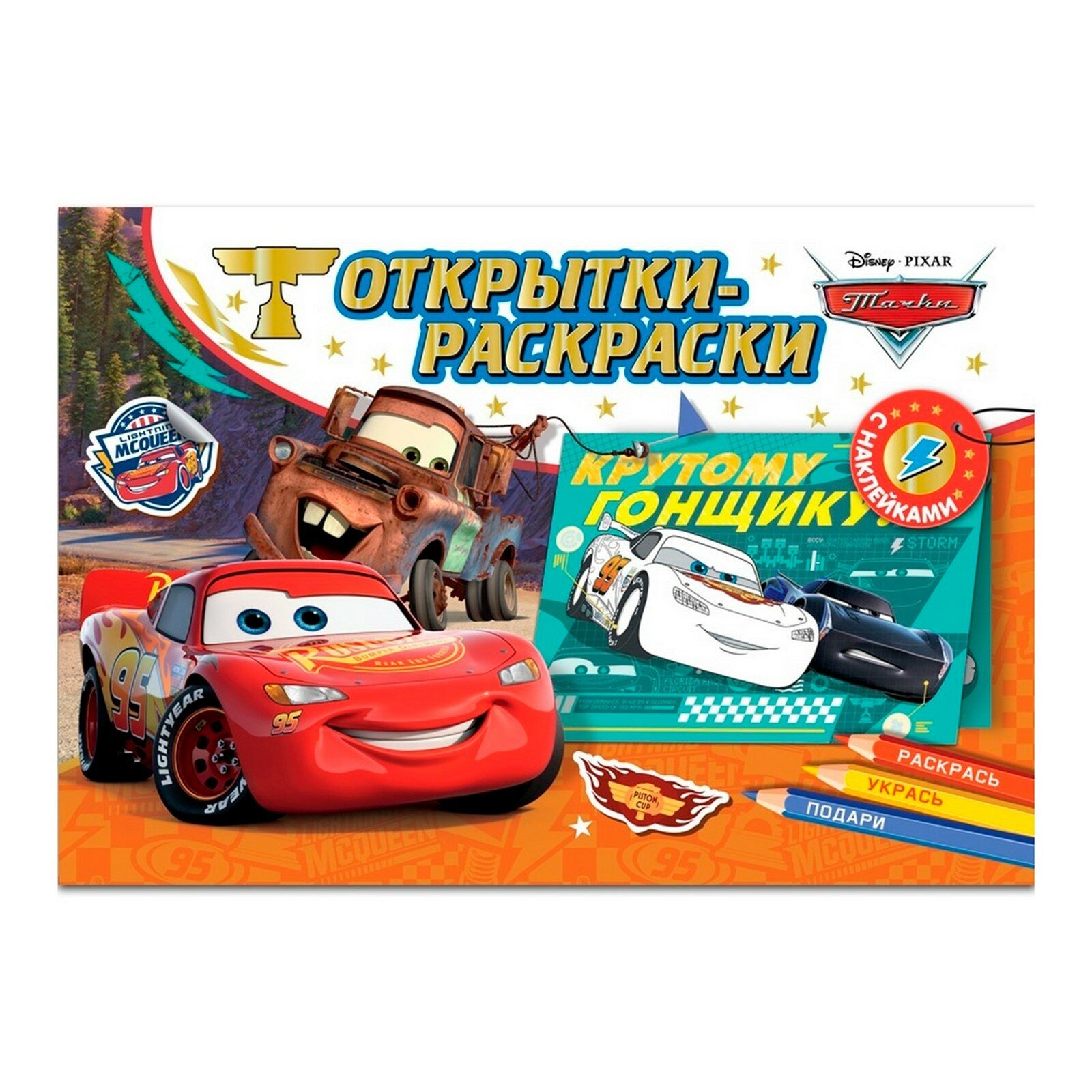 Открытки-раскраски с наклейками. Тачки. На старт, внимание, погнали! интересное: