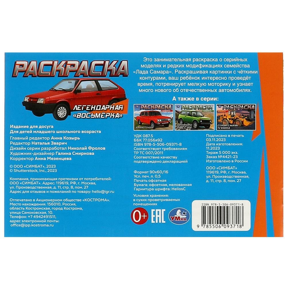 Горизонтальная раскраска Легендарная восьмёрка, 8 стр. Умка 978-5-506-09371-8 интересное:
