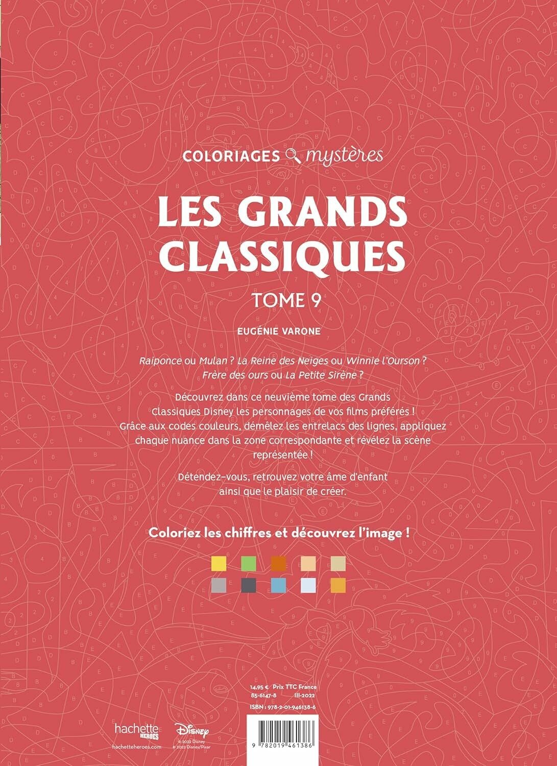 Раскраска по номерам Coloriages mysteres Disney - Les Grands classiques - Великая классика, том 3, 128 стр.