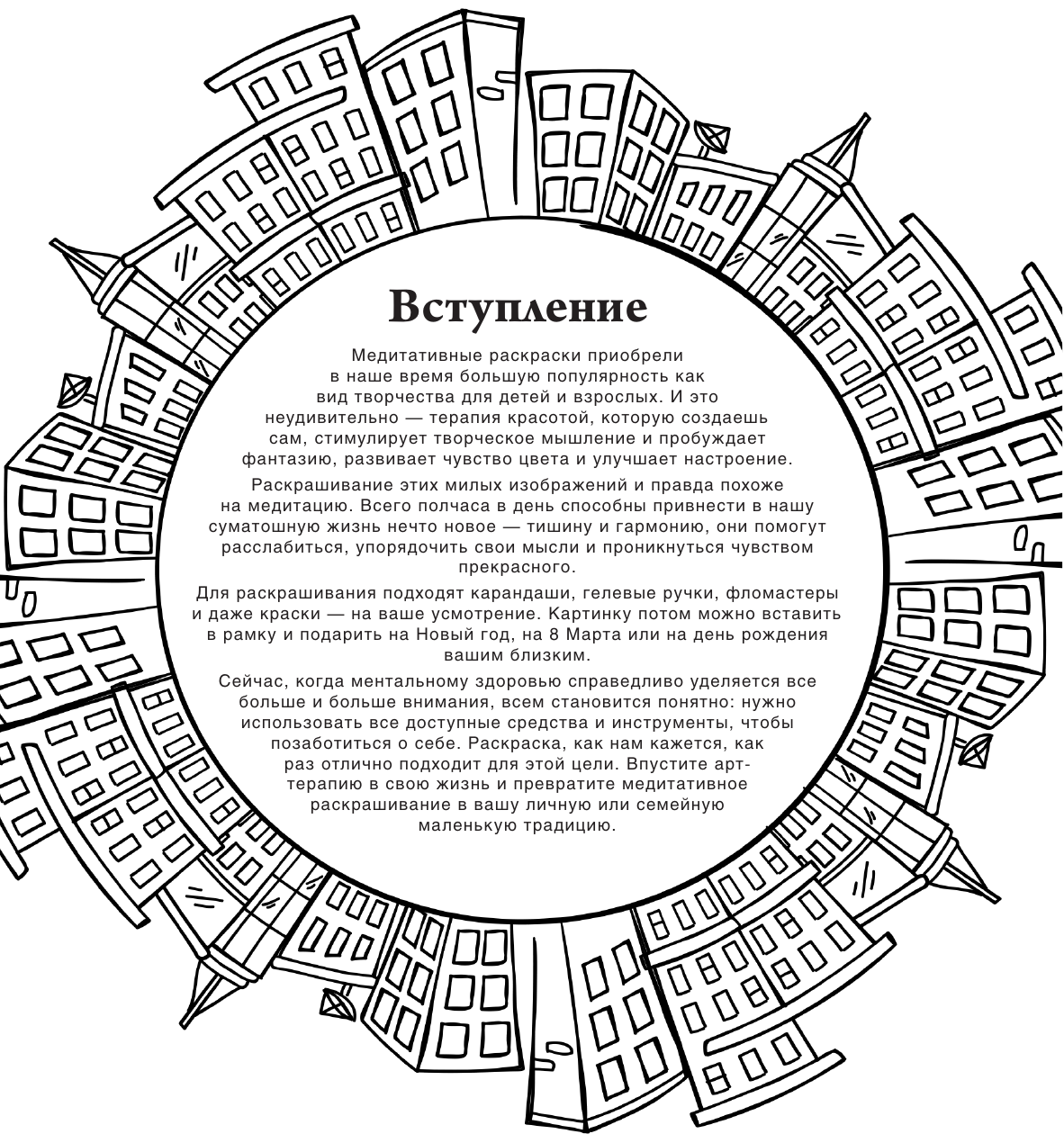 Раскраска Издательства АСТ "Городские Пейзажи. Рисунки Для Медитаций" интересное: