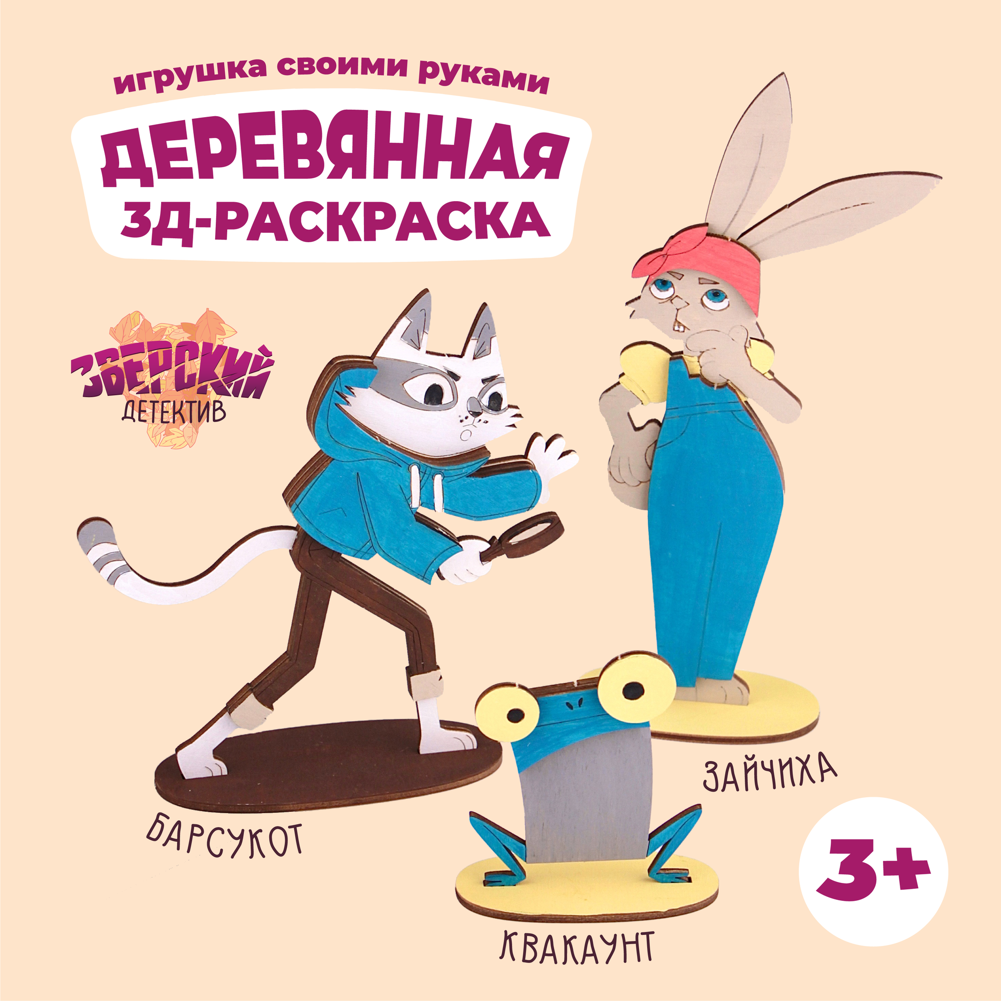 Купить Барсукот. Очень зверский детектив - 3D-раскраска для детей - Барсукот, Квакаунт, Зайчиха
