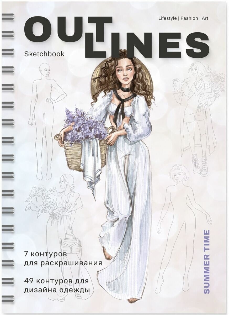Альбом для творчества/Скетчбук с шаблонами фигур и контурами для раскрашивания OUTLINES Summer Time интересное: