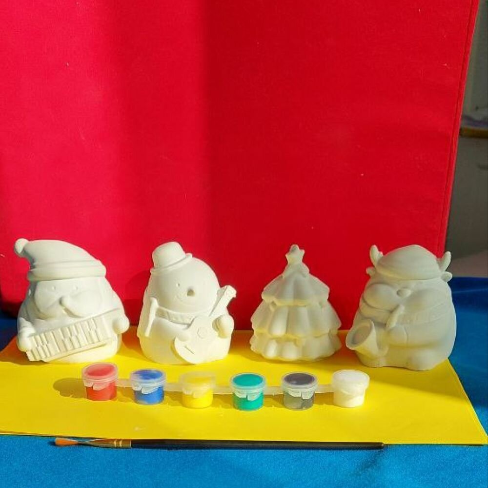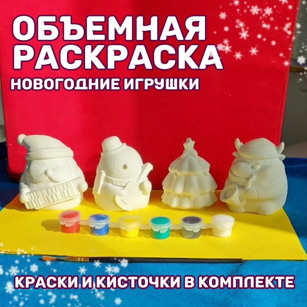 Купить 3D раскраска из гипса, новогодние фигурка , краски, кисточка
