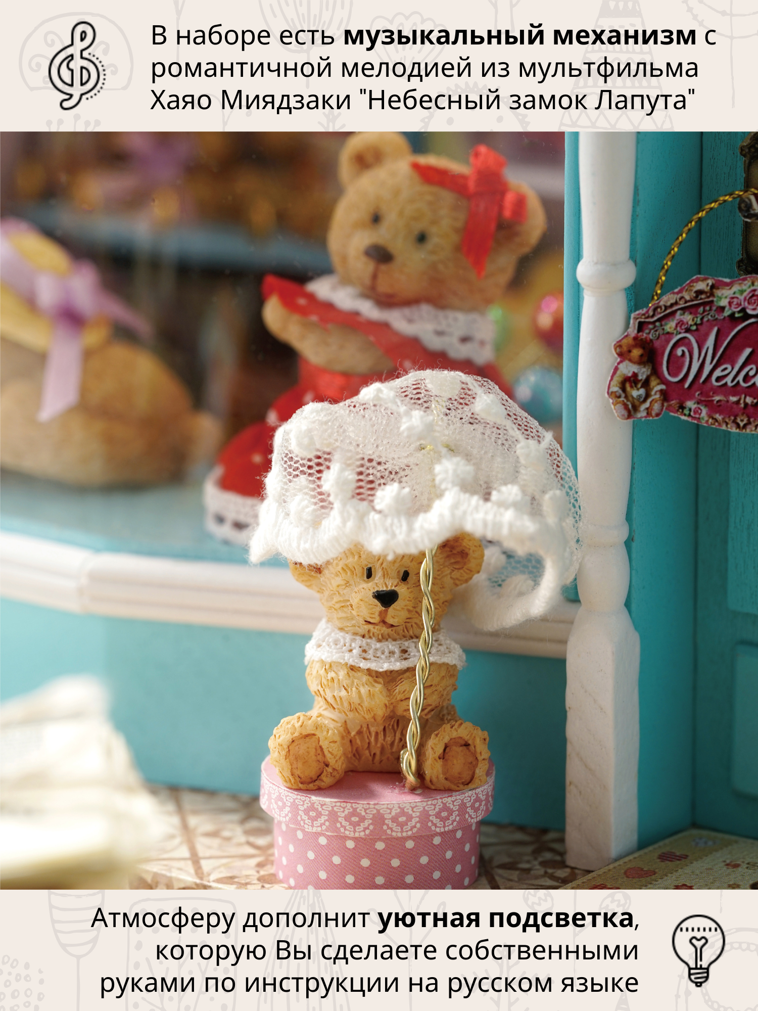 Купить Музыкальный Подарочный Интерьерный конструктор (Румбокс) Yarvita "Сказки Медвежат" миниатюра DIY House