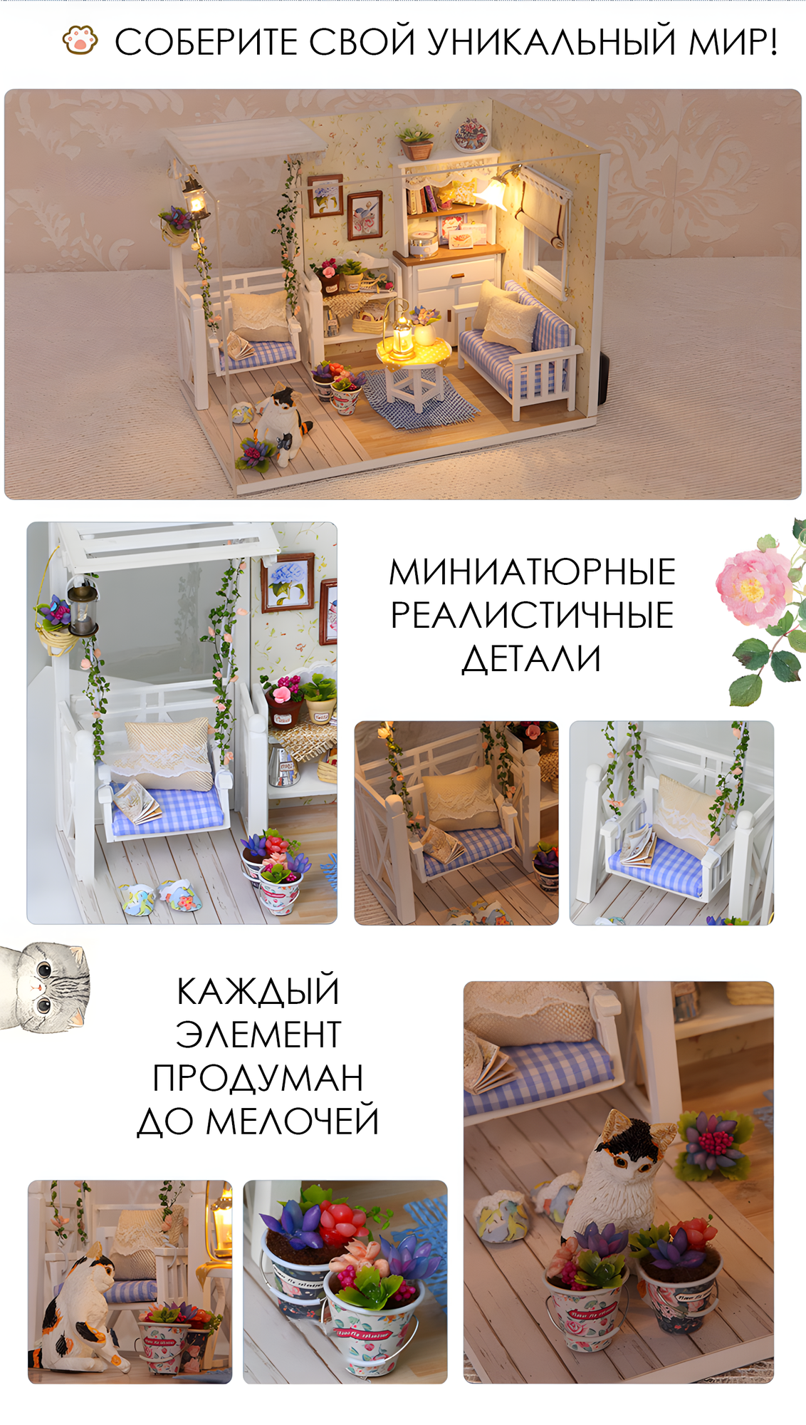 Румбокс Kitten Diary с колпаком, сборная модель, интерьерный конструктор, 11,6х17,1х13,1 см, английская версия интересное: