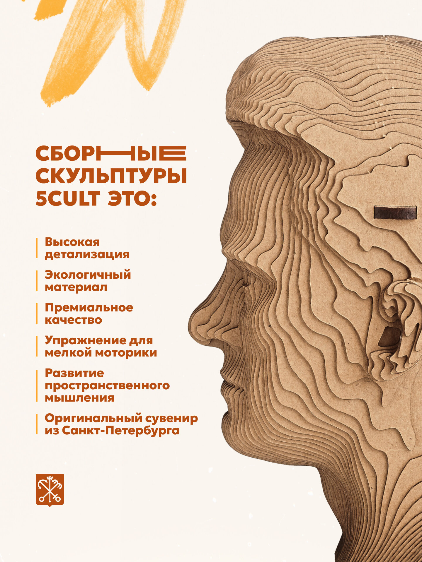 СохранитьКартонный конструктор бюст Маяковский Владимир3д пазл из картона 5CULT интересное: