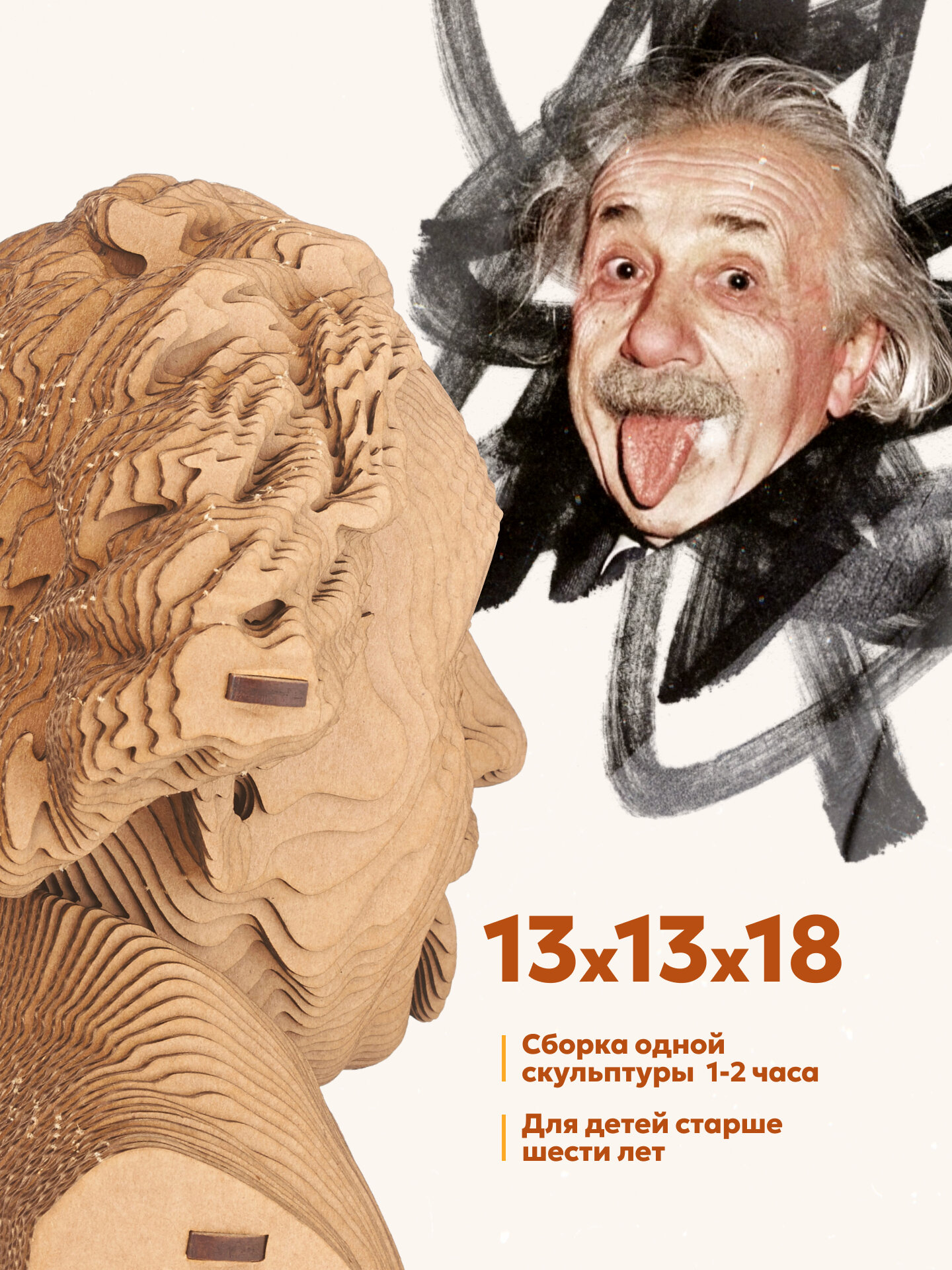 СохранитьКартонный конструктор бюст Эйнштейн Альберт с языком 3д пазл из картона 5CULT интересное: