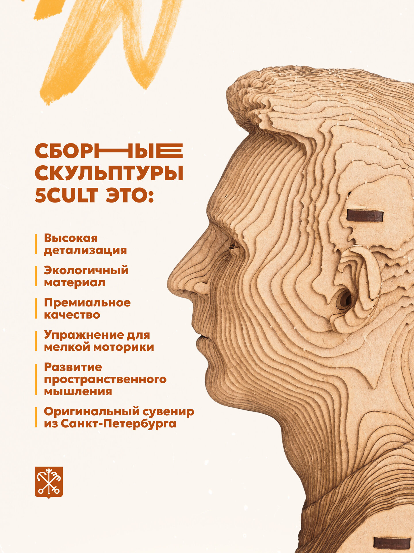3д картонный конструктор бюст Достоевский Федор от 5CULT пазл из картона