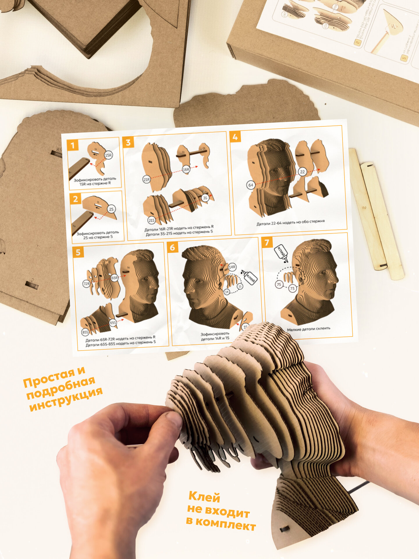 Картонный конструктор бюст Тесла Никола 3д пазл от 5CULT из гофрокартона