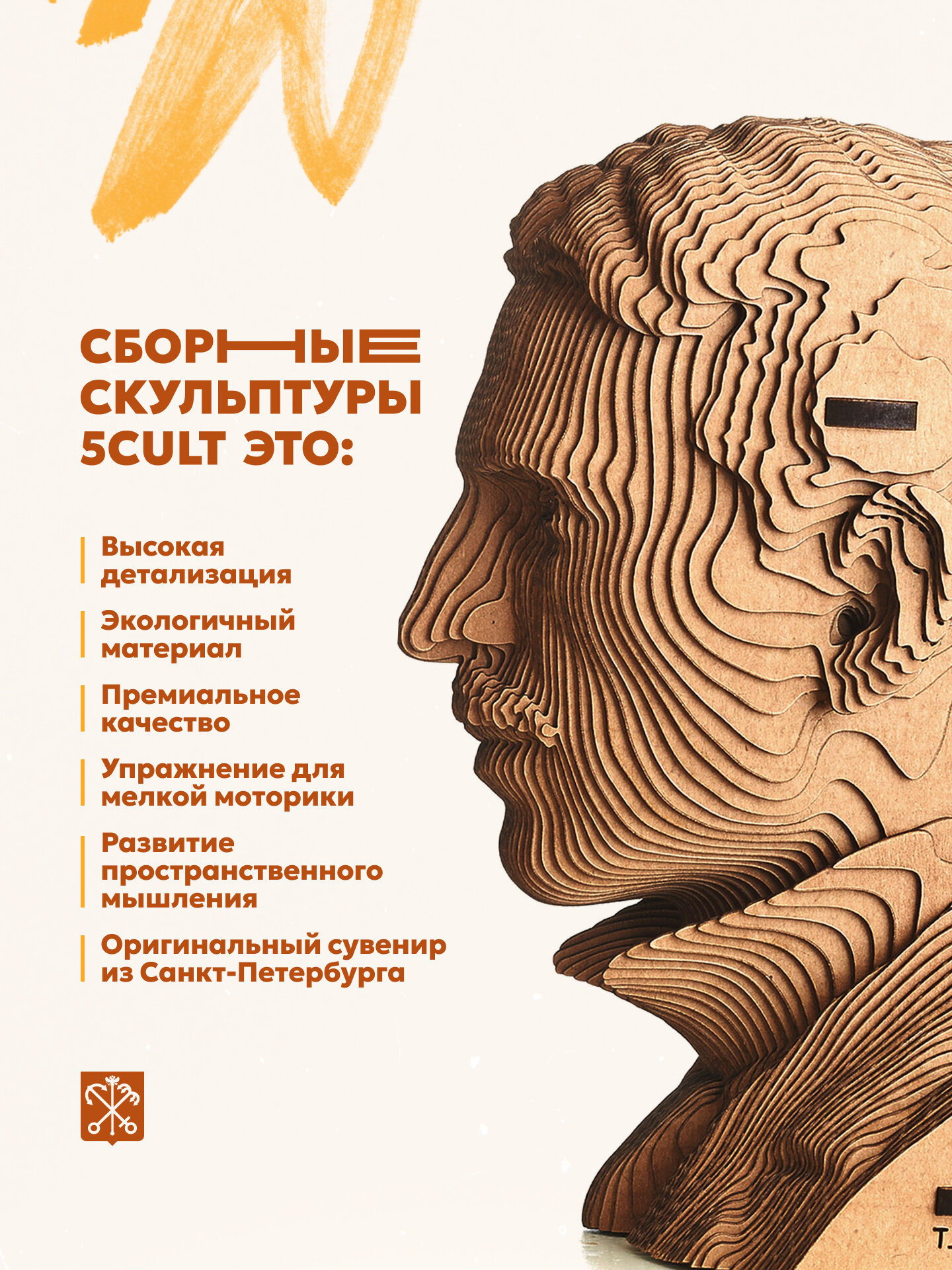 СохранитьКартонный конструктор бюст Тесла Никола 3д пазл от 5CULT из гофрокартона интересное: