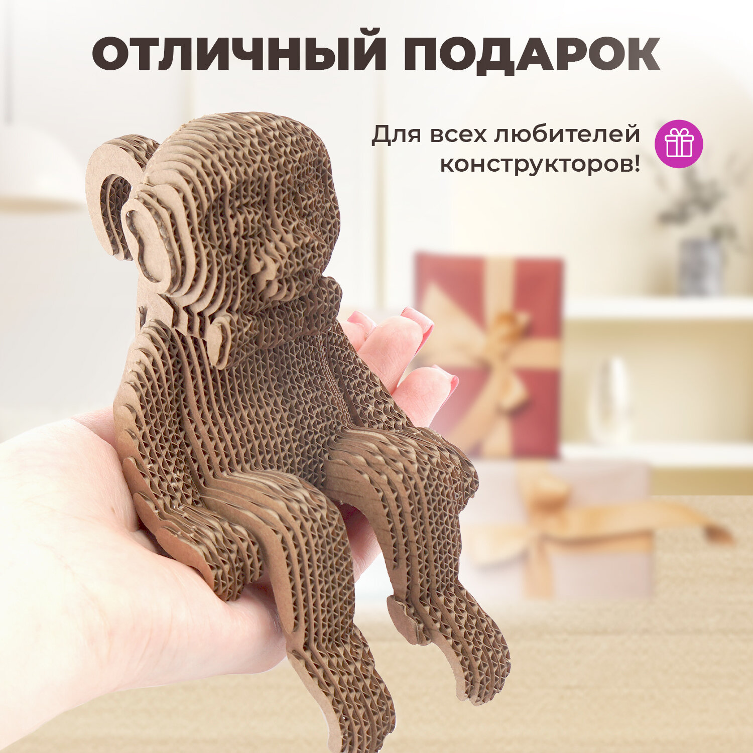 Купить Объемный 3 д конструктор пазл из картона LORI Обезьянки, 3 шт в наборе, Им-К-004