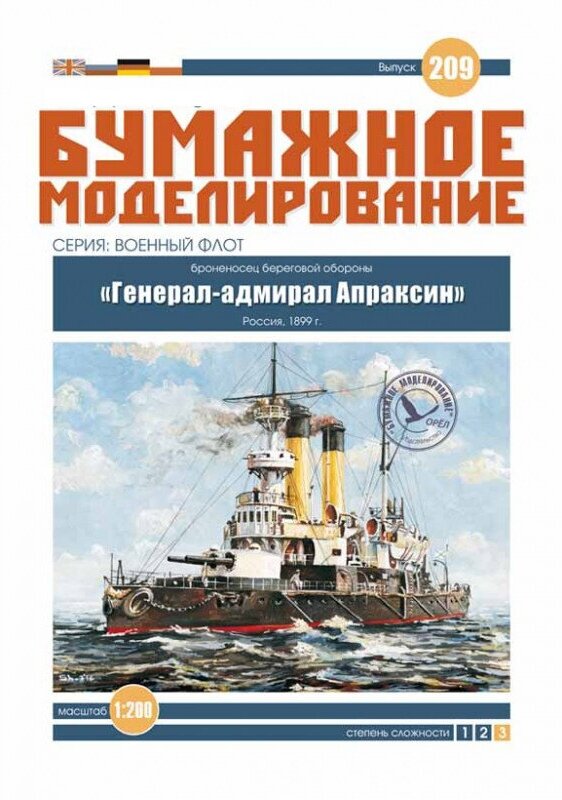 Броненосец "Генерал-адмирал Апраксин", Россия 1899 год, модель корабля из бумаги, 430 мм, М.1:200 интересное: