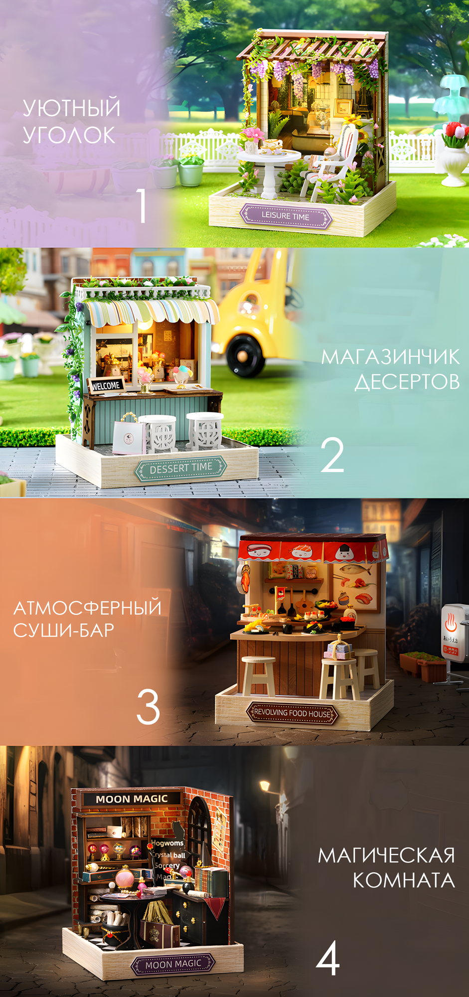 Румбокс Dessert Time QT-086 с куполом, сборная модель, интерьерный конструктор, 11,5х9х9 см, китайская версия