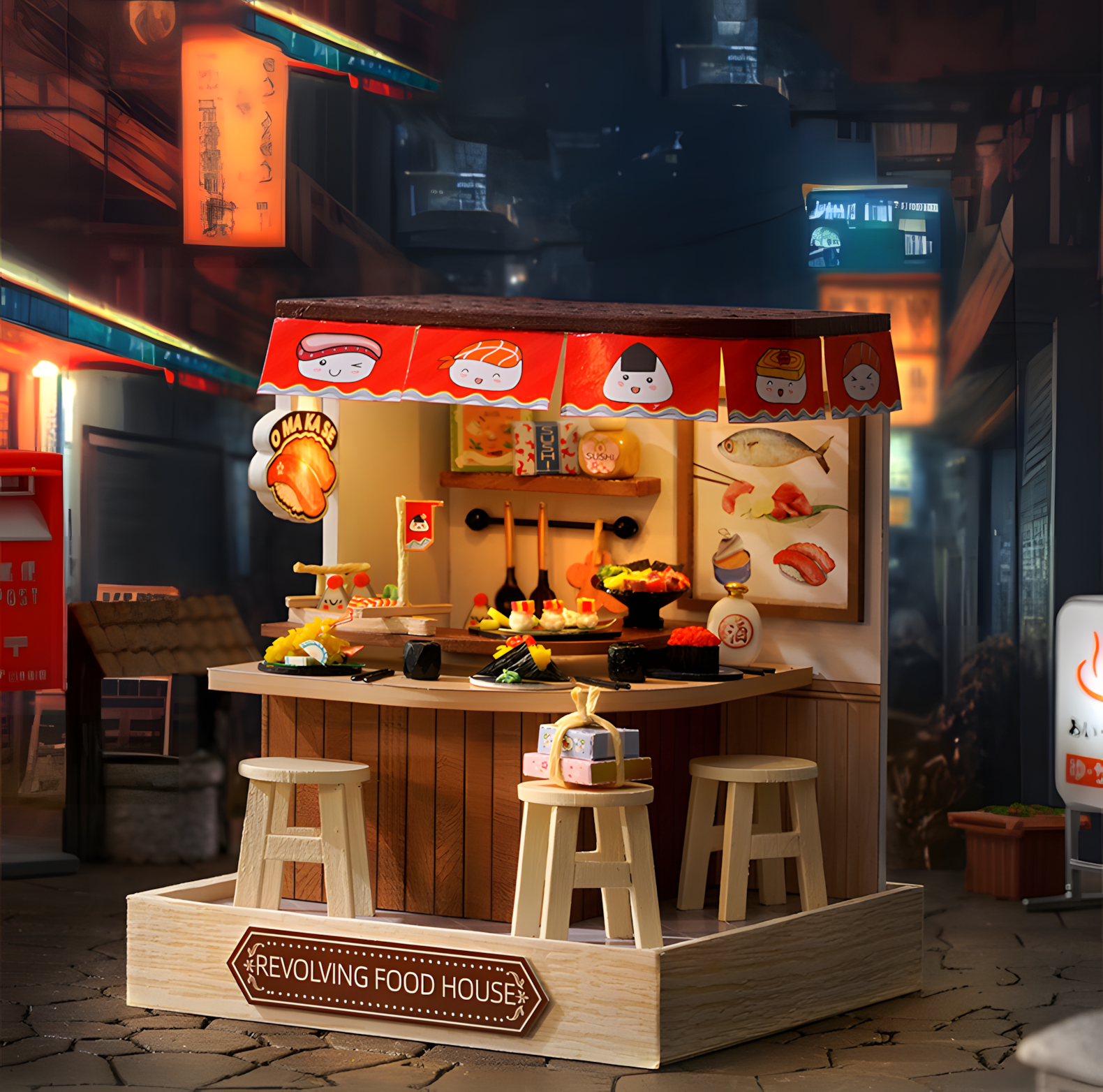 Румбокс Revolving Food House QT-085 с куполом, сборная модель, интерьерный конструктор, 11,5х9х9 см, китайская версия