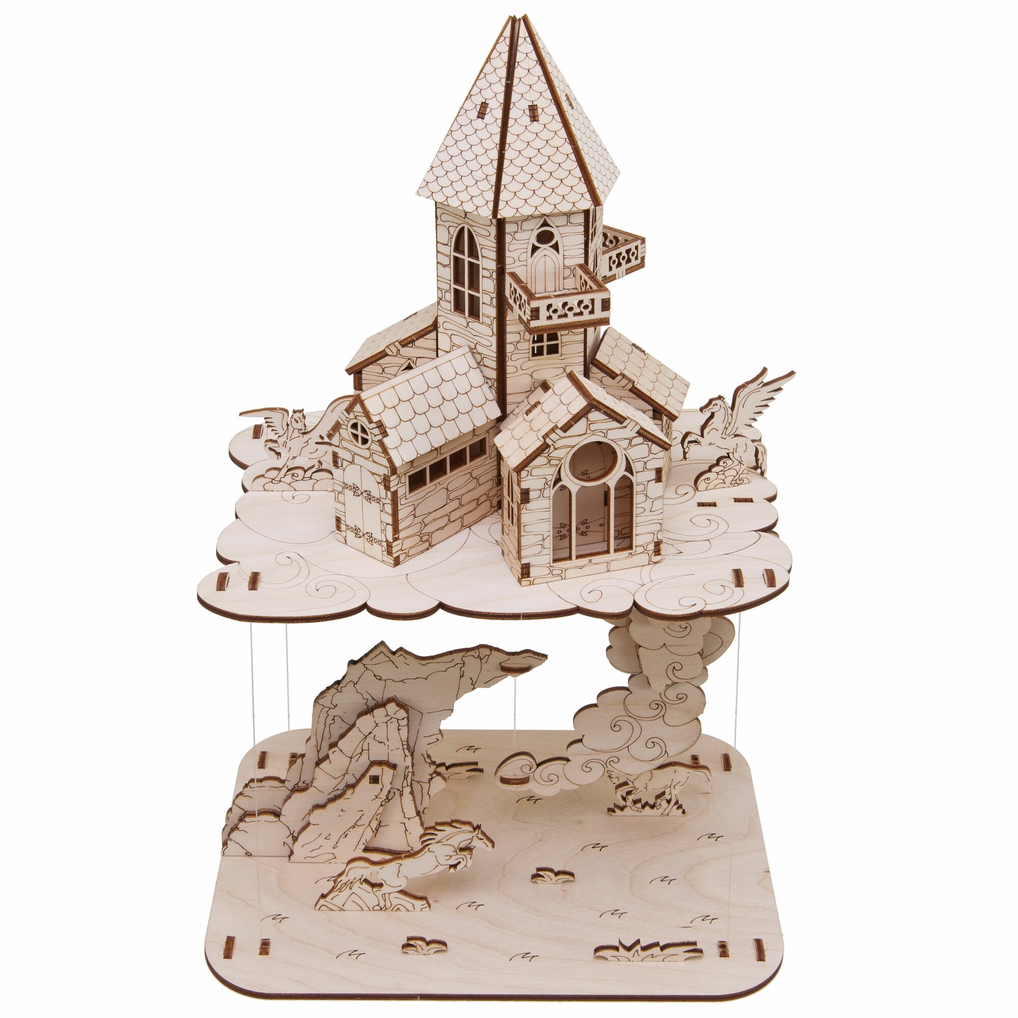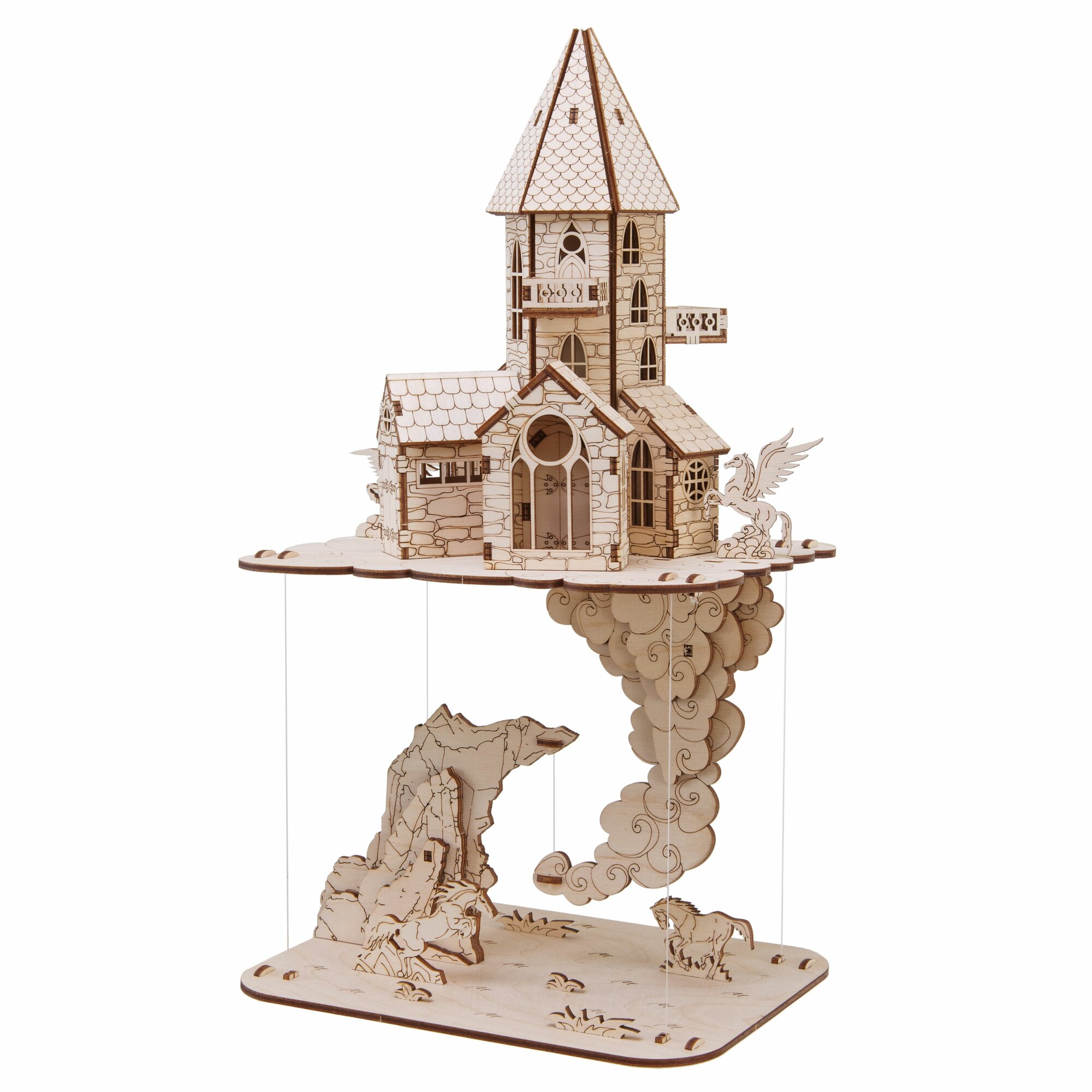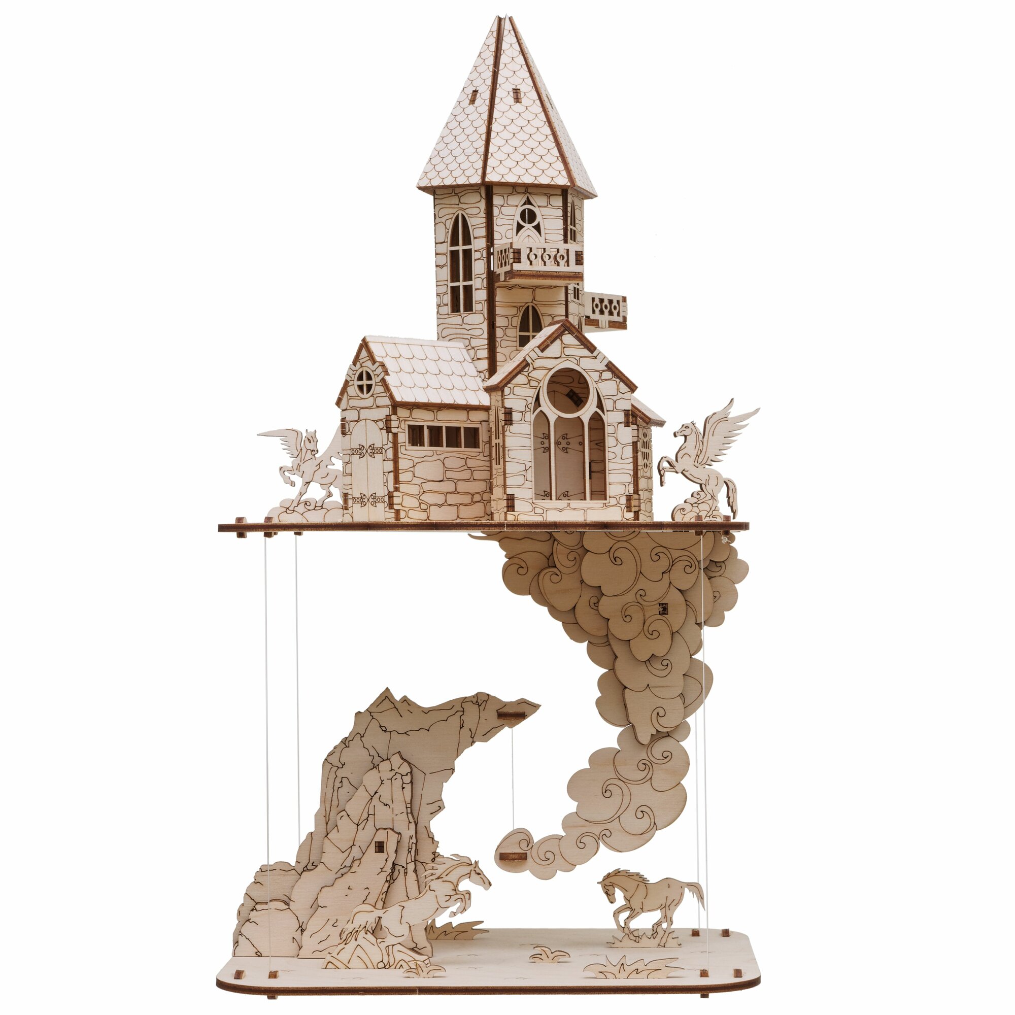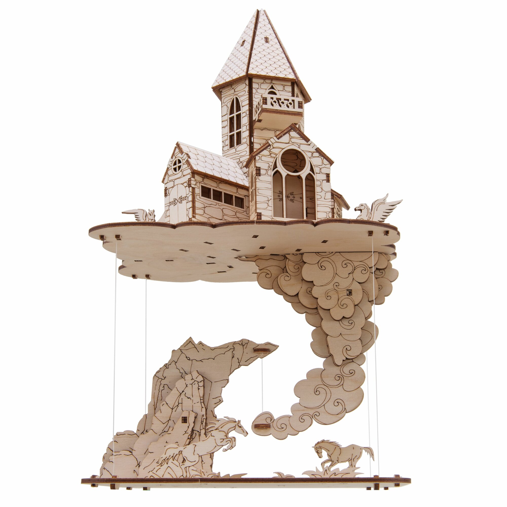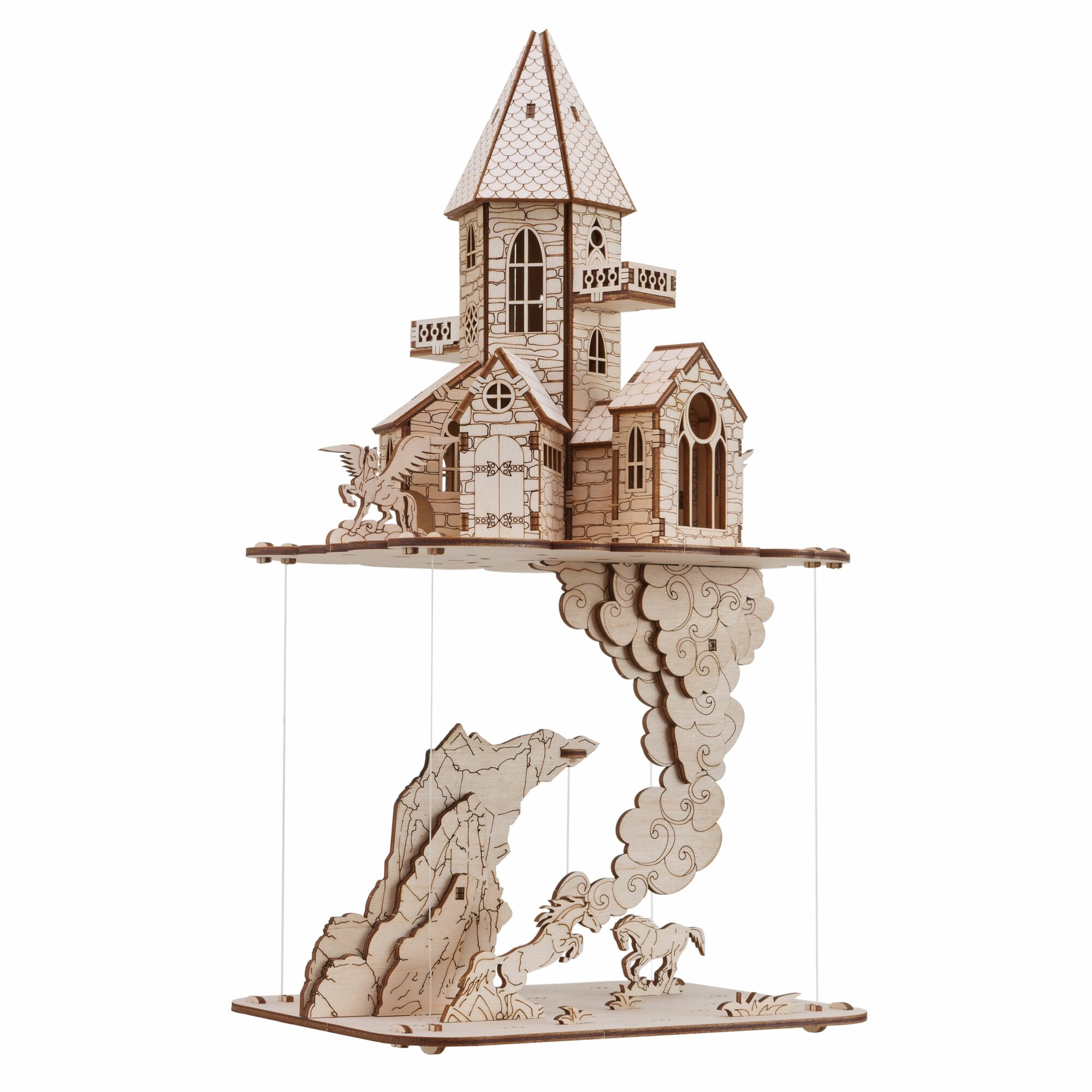 Купить Сборная деревянная модель "Летающий замок", конструктор деревянный дизайн интерьера 34 см, 94 детали