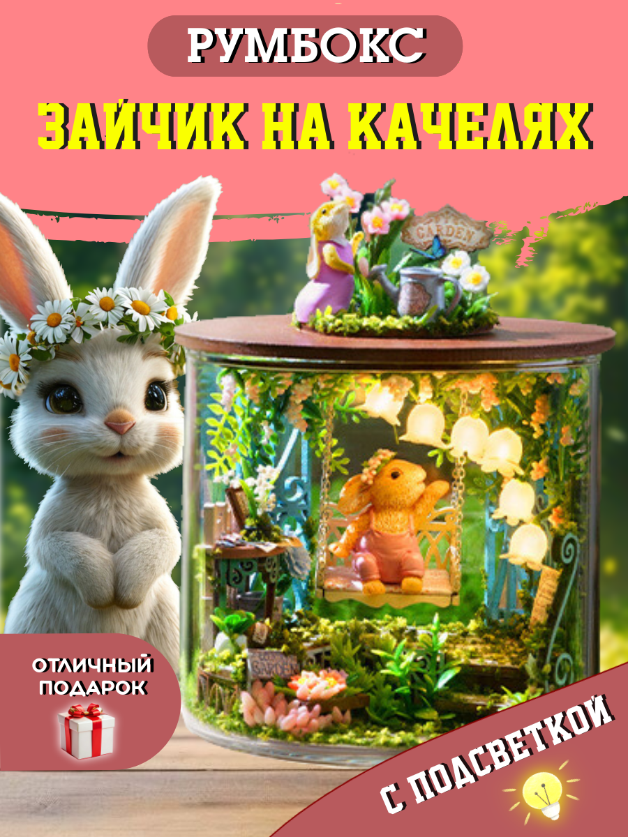Мини румбокс оранжерея, интерьерный конструктор, "Зайчик на качелях" своими руками интересное: