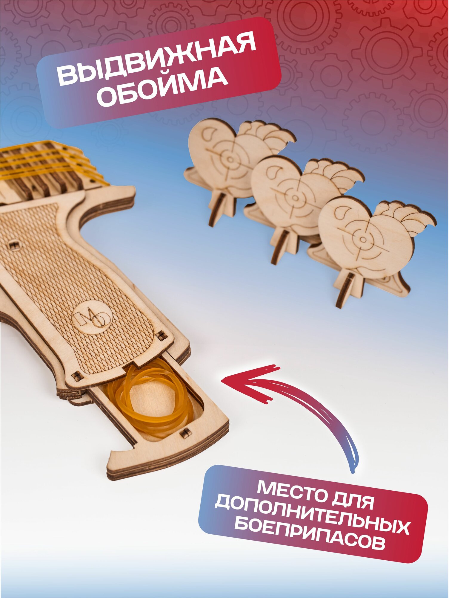 Купить Деревянный конструктор Пистолет Резинкострел, сборная модель, 3D пазл головоломка, механический конструктор