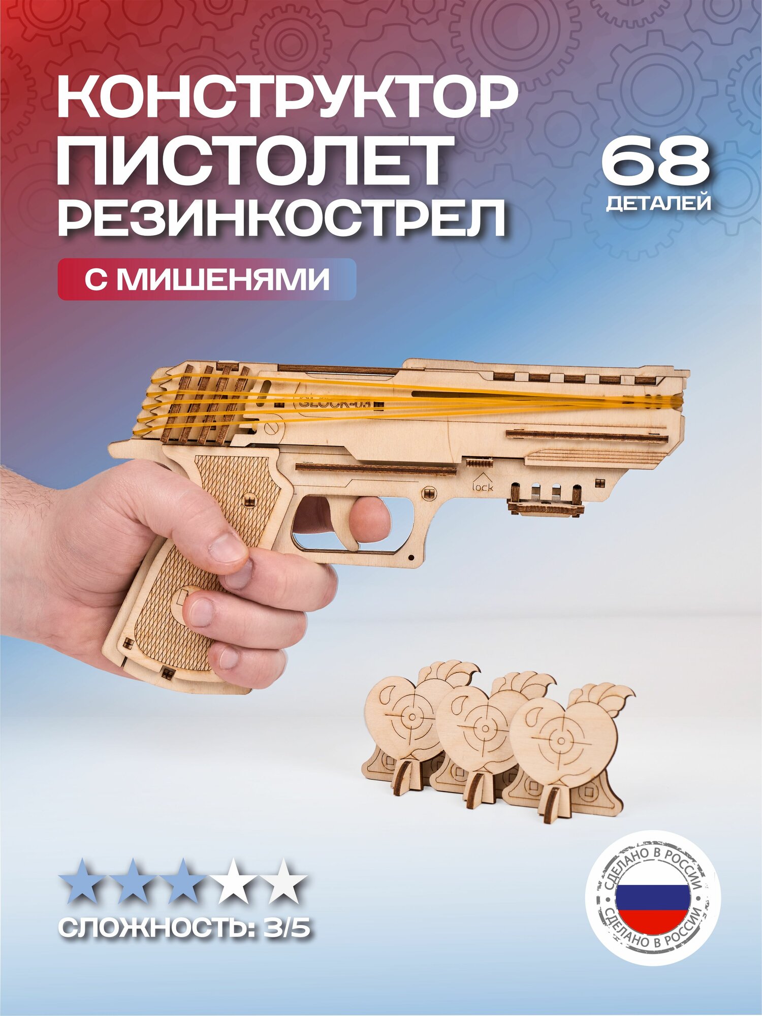 Деревянный конструктор Пистолет Резинкострел, сборная модель, 3D пазл головоломка, механический конструктор интересное: