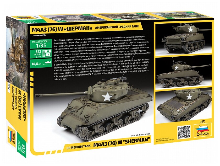 Купить Сборная модель 1:35 Звезда 3676ПН Американский средний танк М4А3 (76) W "Шерман" с 76-мм пушкой (клей+краска+кисть)