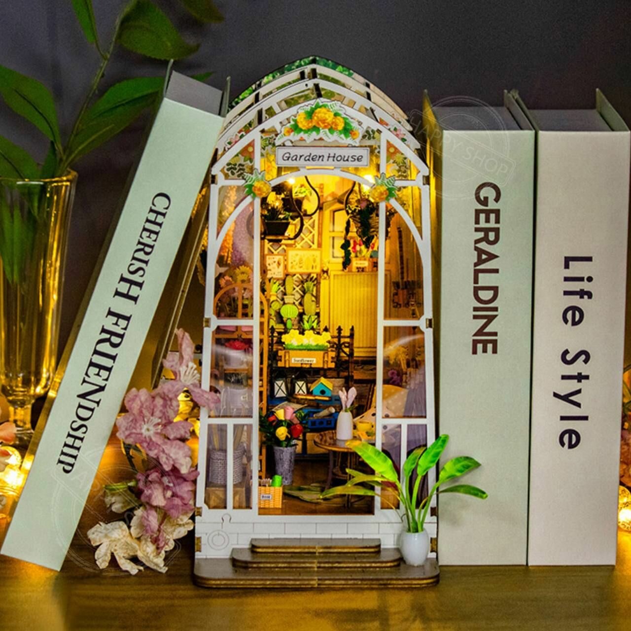 СохранитьИнтерьерный конструктор Книжный румбокс Оранжерея с подсветкой / Деревянный пазл 3D подарок ребенку интересное: