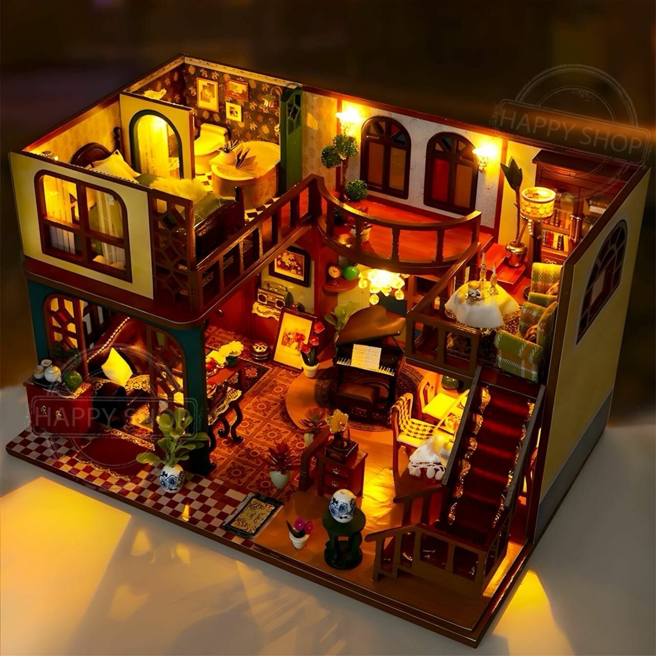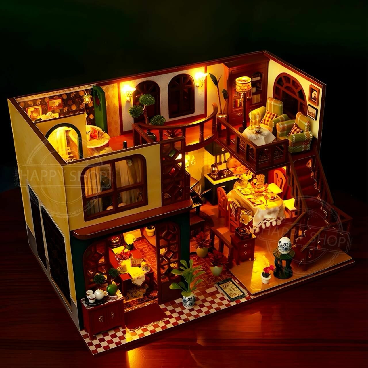 Купить Интерьерный конструктор Румбокс Дом в восточном стиле, с подсветкой и с куполом / Набор для творчества diy house Room box