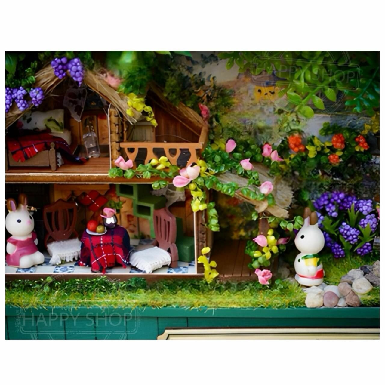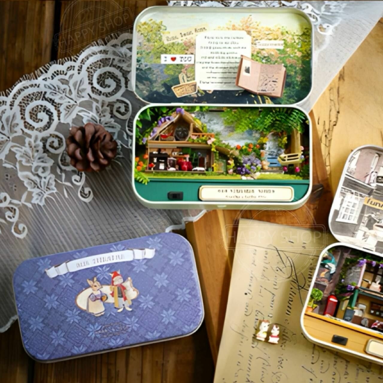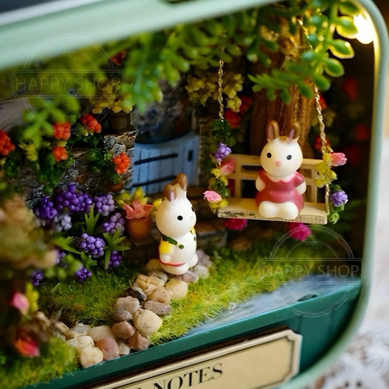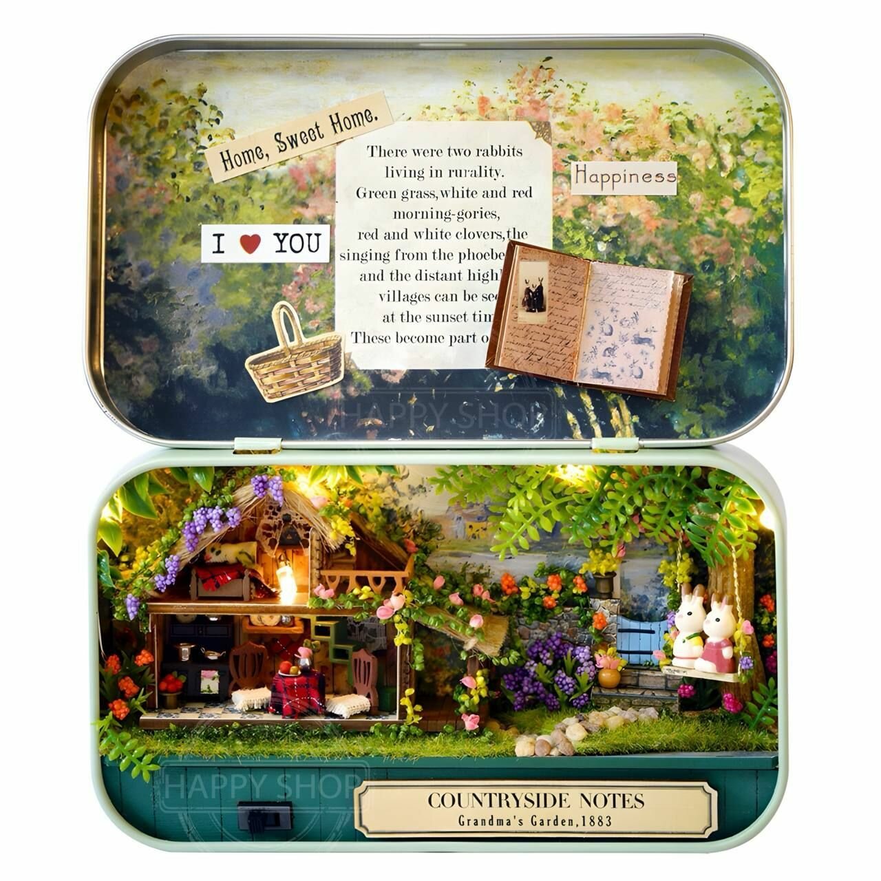 Интерьерный конструктор мини румбокс в шкатулке Уголок счастья, с подсветкой / Набор для творчества diy house Room box