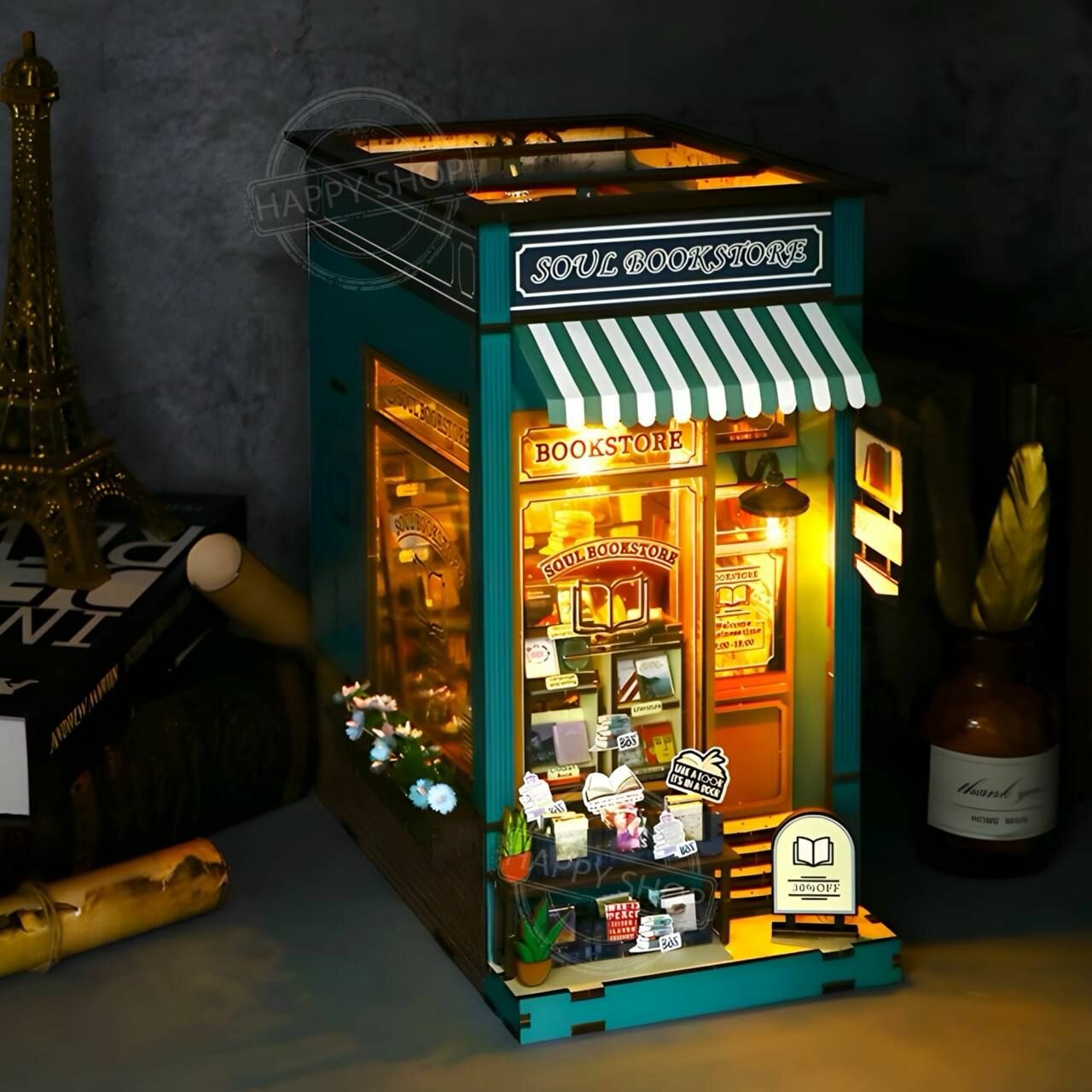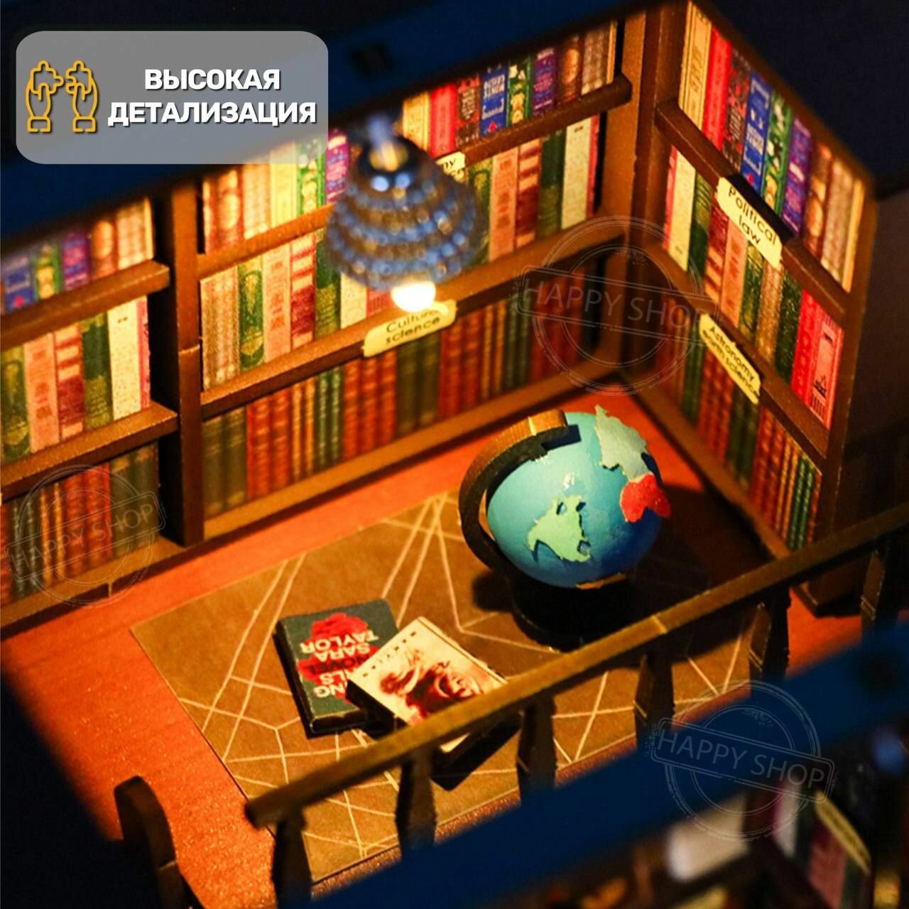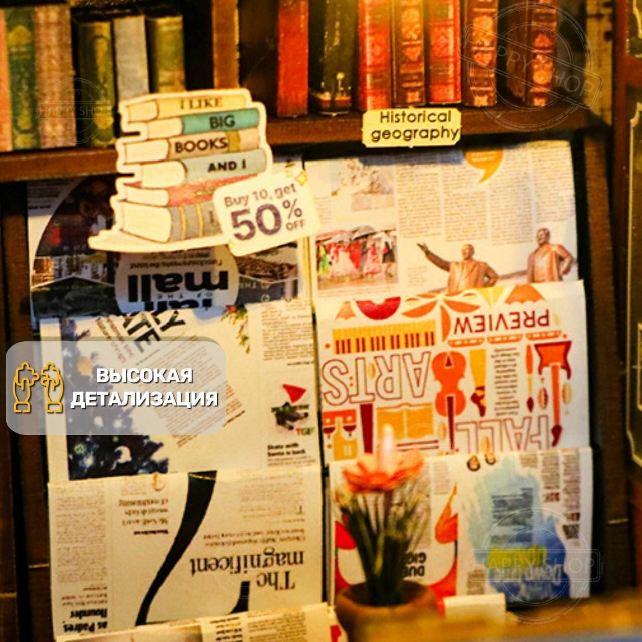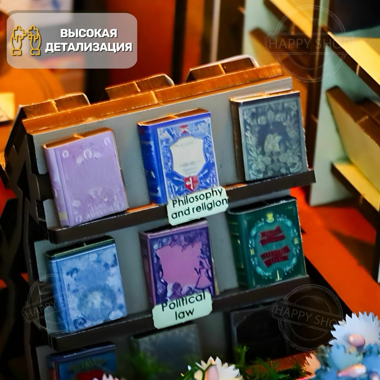 Интерьерный конструктор Румбокс Книжный магазин, с подсветкой / Набор для творчества diy house Room box