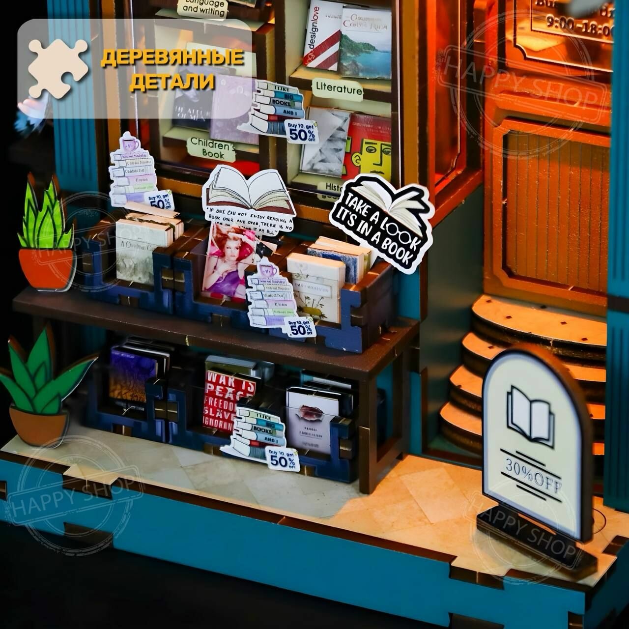 СохранитьИнтерьерный конструктор Книжный румбокс "Книжный магазин" с подсветкой / Деревянный пазл 3D подарок ребенку интересное:
