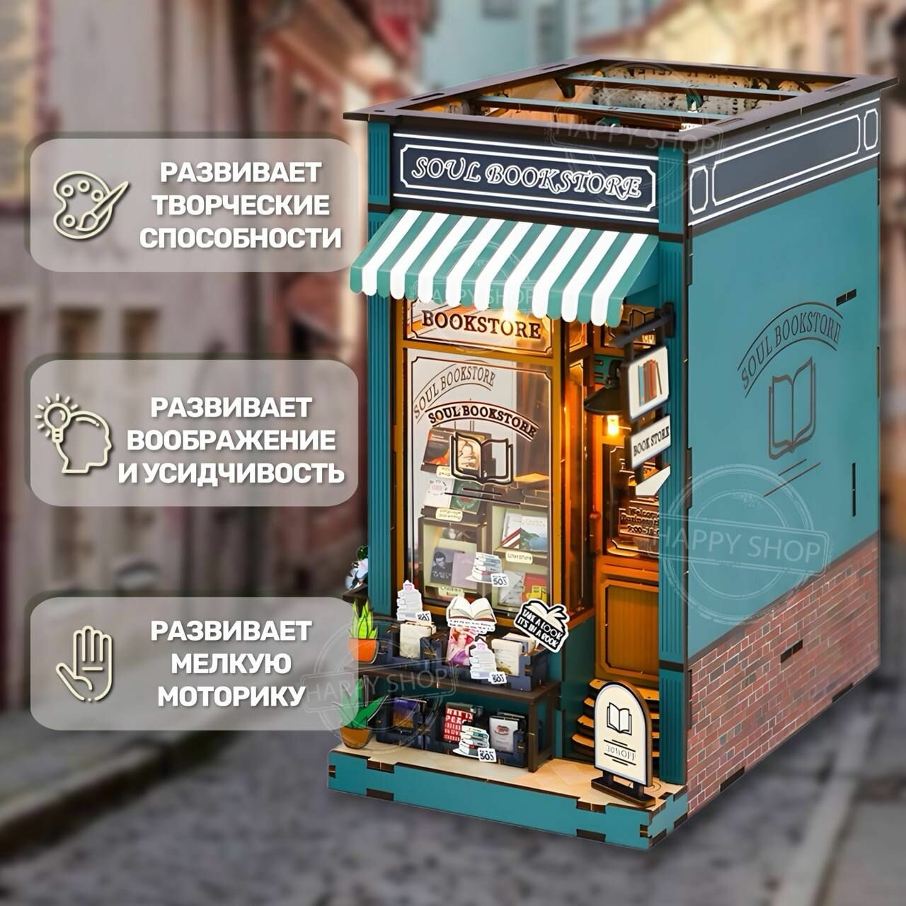 Купить Интерьерный конструктор Книжный румбокс "Книжный магазин" с подсветкой / Деревянный пазл 3D подарок ребенку