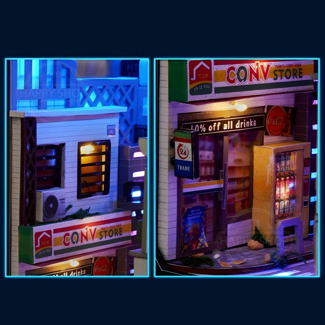 Купить Интерьерный конструктор Книжный румбокс Киберпанк Cyberpunk, с подсветкой / Набор для творчества diy house Room box