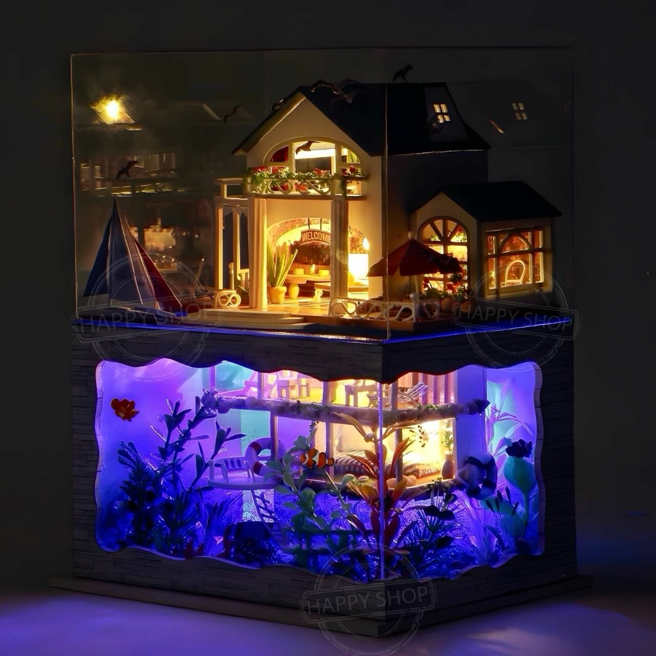 Купить Интерьерный конструктор Румбокс Вилла у моря, с подсветкой и с куполом / Набор для творчества diy house Room box