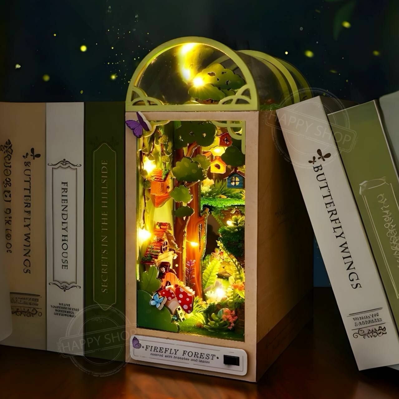 Купить Интерьерный конструктор Книжный румбокс Лес светлячков, с подсветкой / Набор для творчества diy house Room box