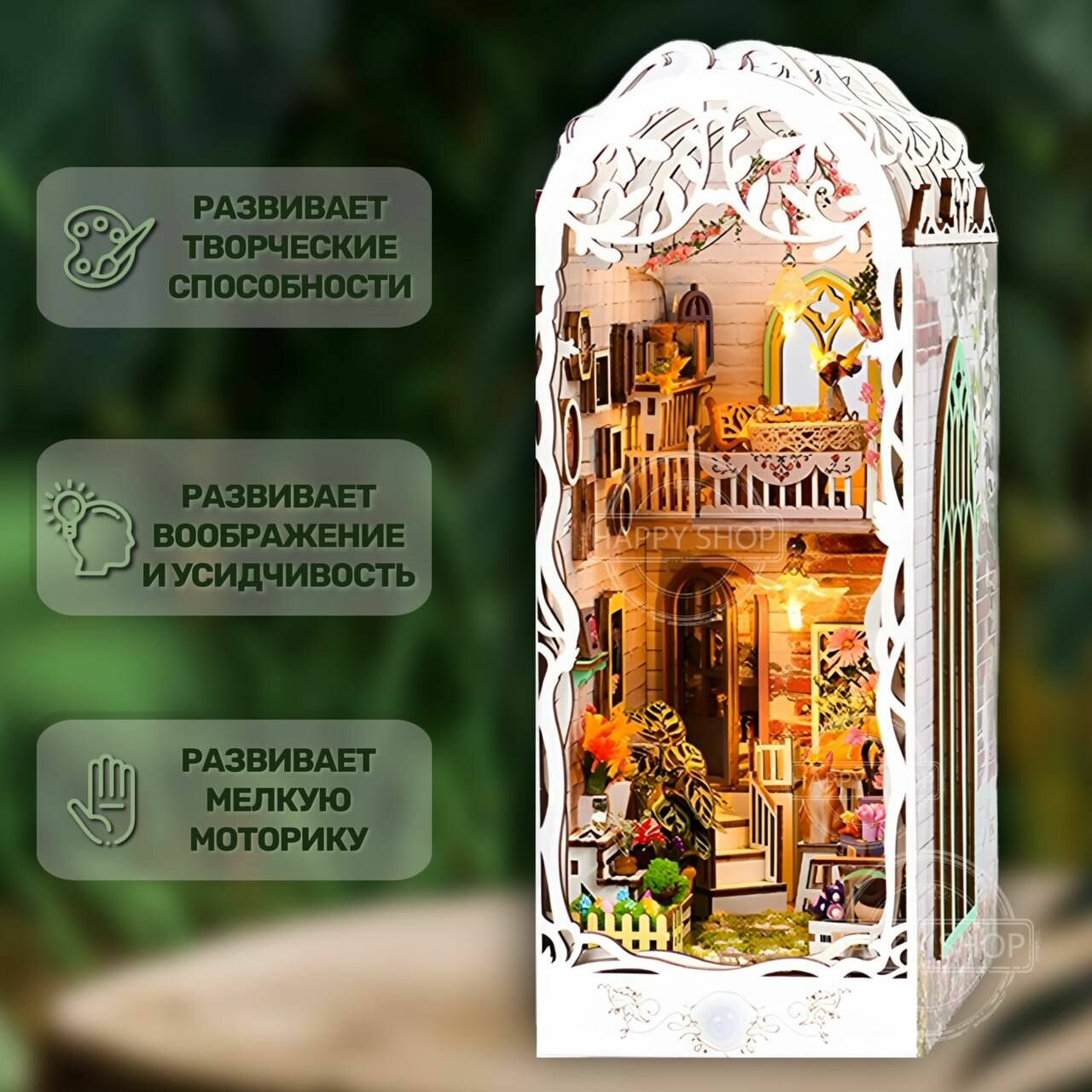 Интерьерный конструктор Книжный румбокс Оранжерея с подсветкой / Деревянный пазл 3D подарок ребенку