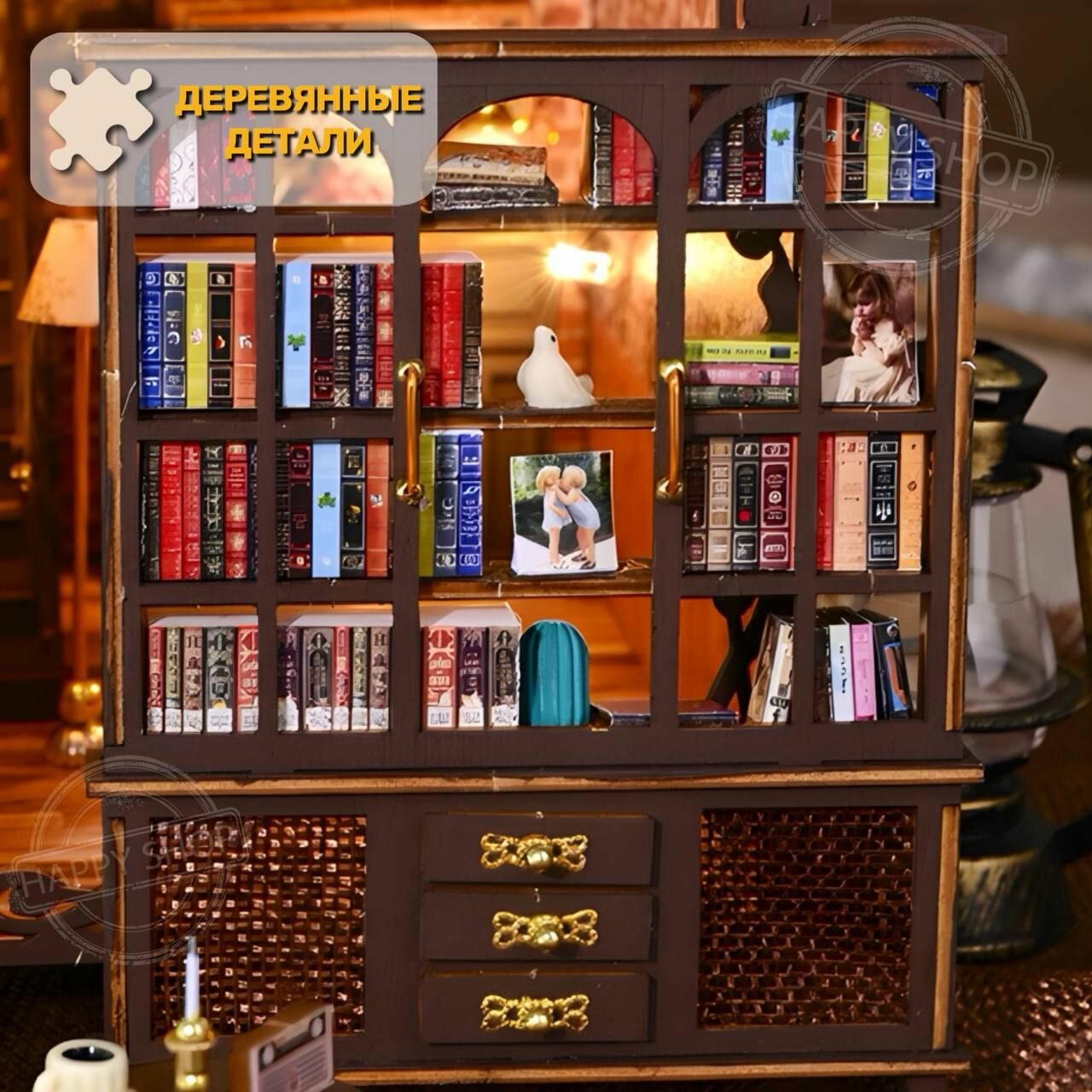 Интерьерный конструктор Румбокс Книжный магазин, с подсветкой / Набор для творчества diy house Room box