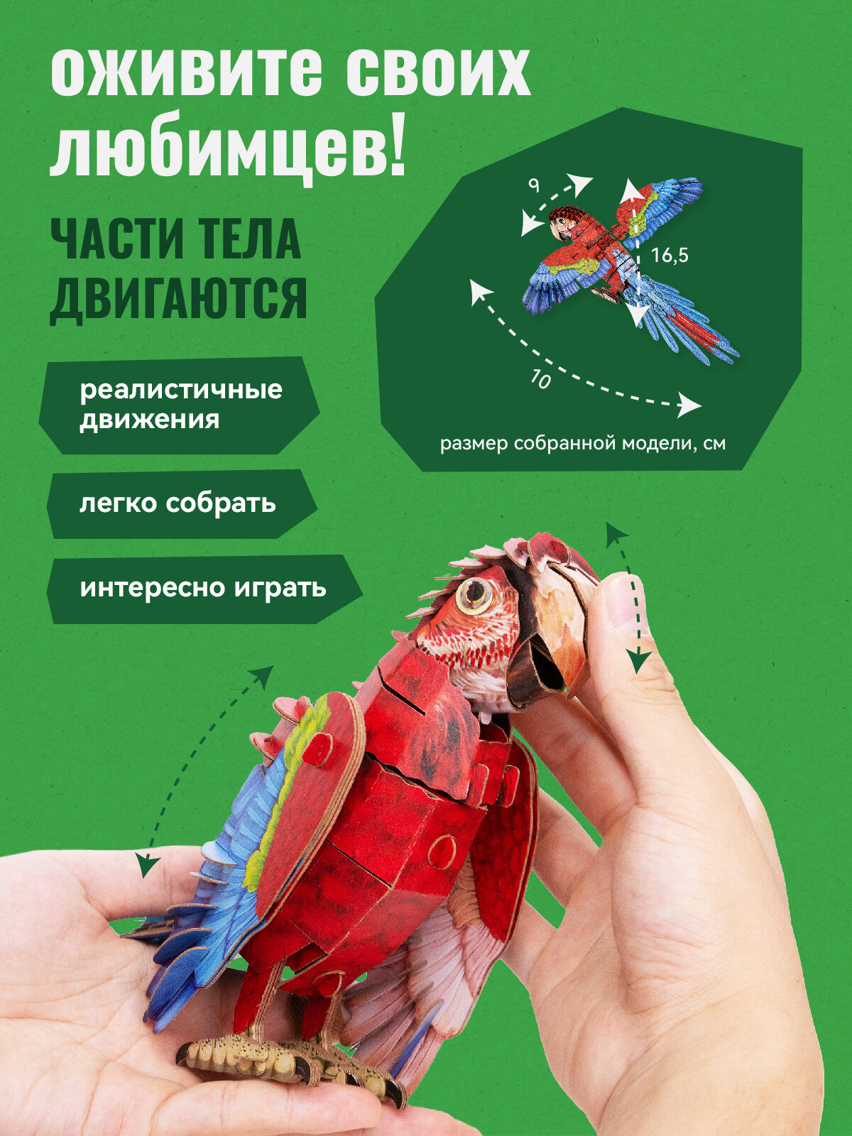 СохранитьКартонный 3д пазл конструктор Makebug Попугай Ара интересное: