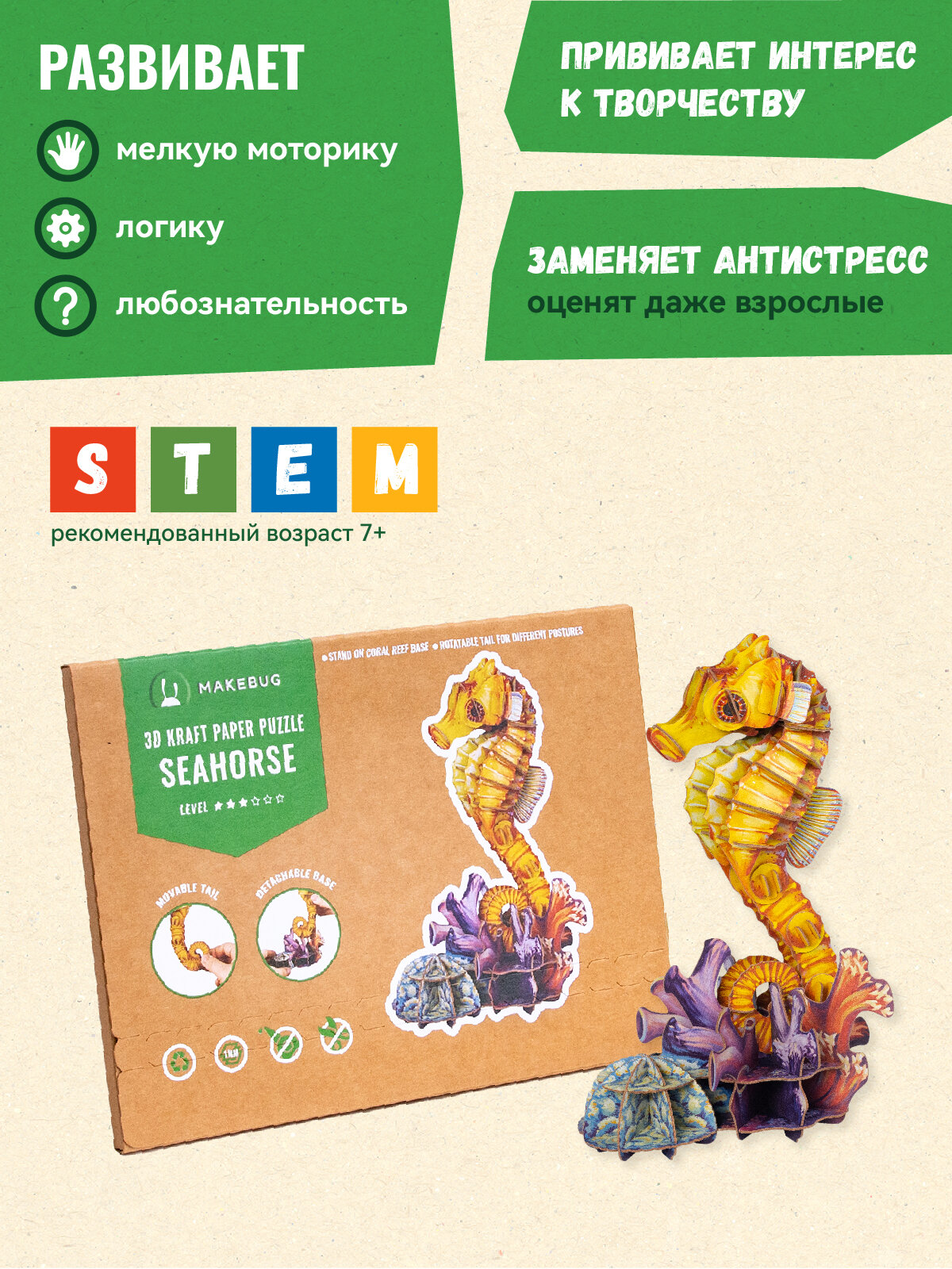 Купить Картонный 3д пазл конструктор Makebug Морской Конек