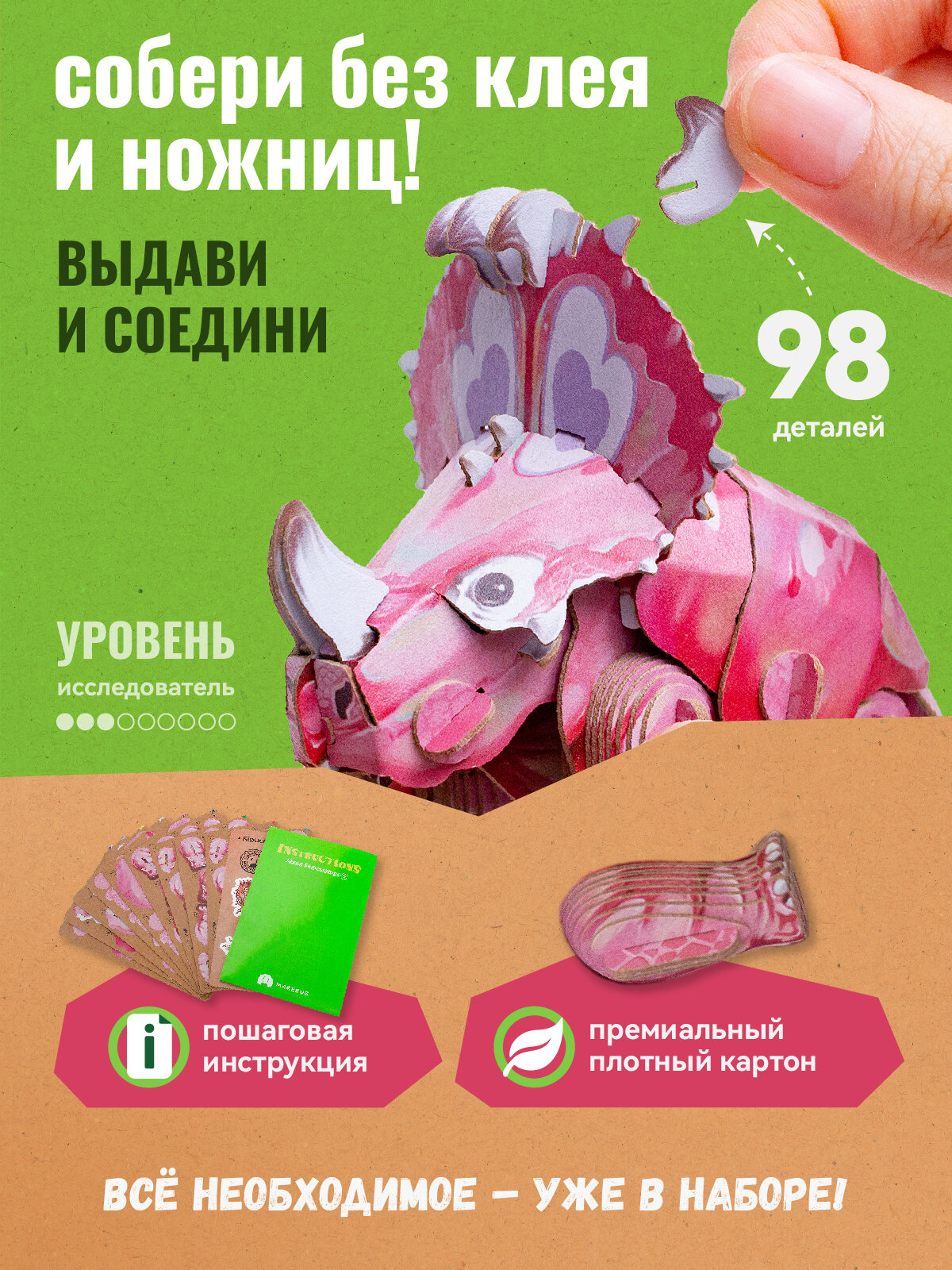 Картонный 3д пазл конструктор Makebug Синоцератопс интересное: