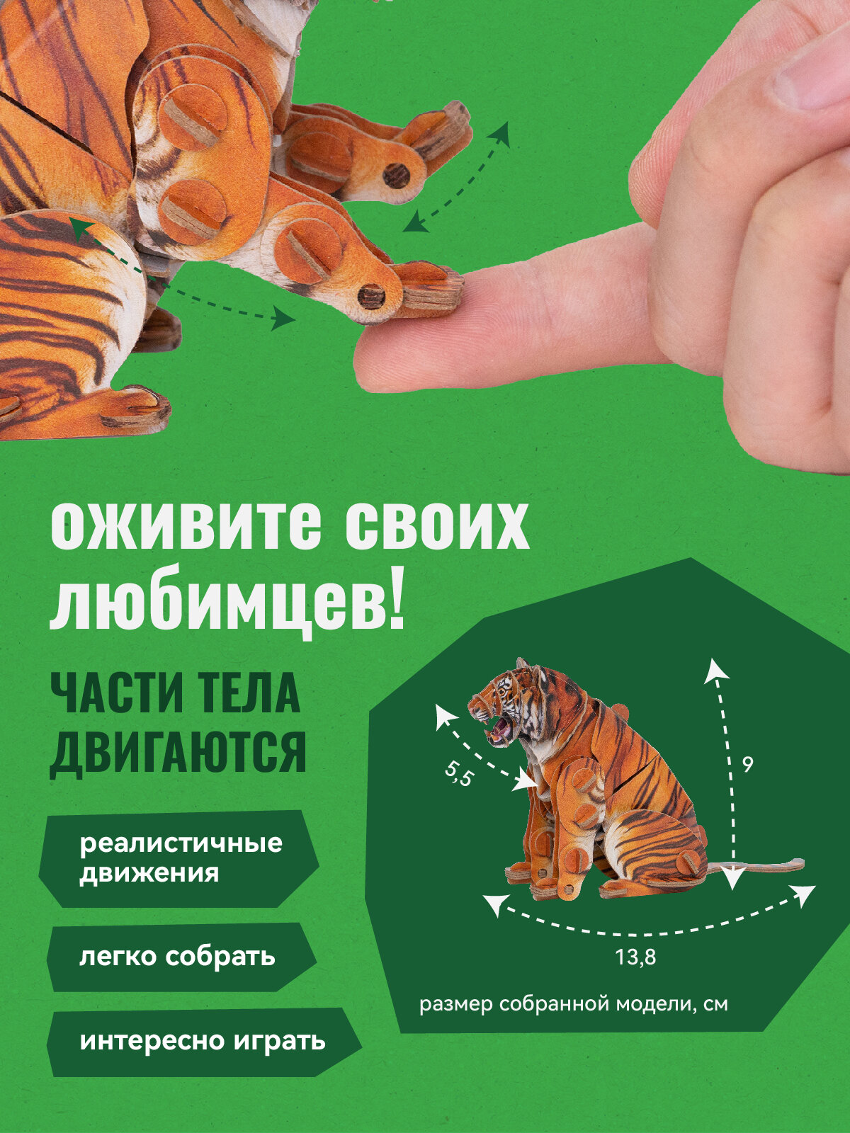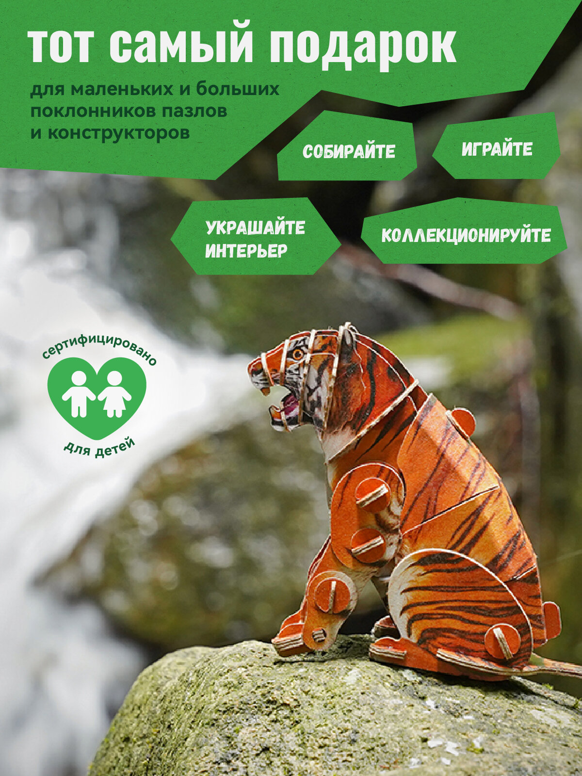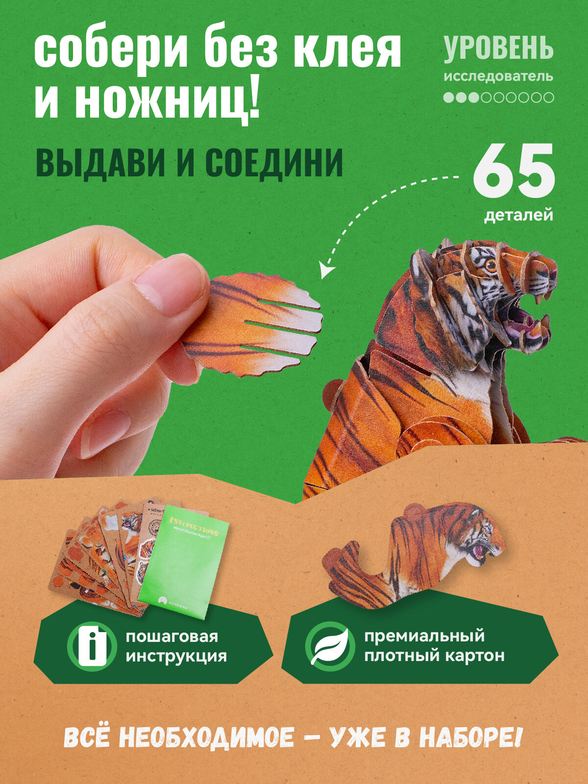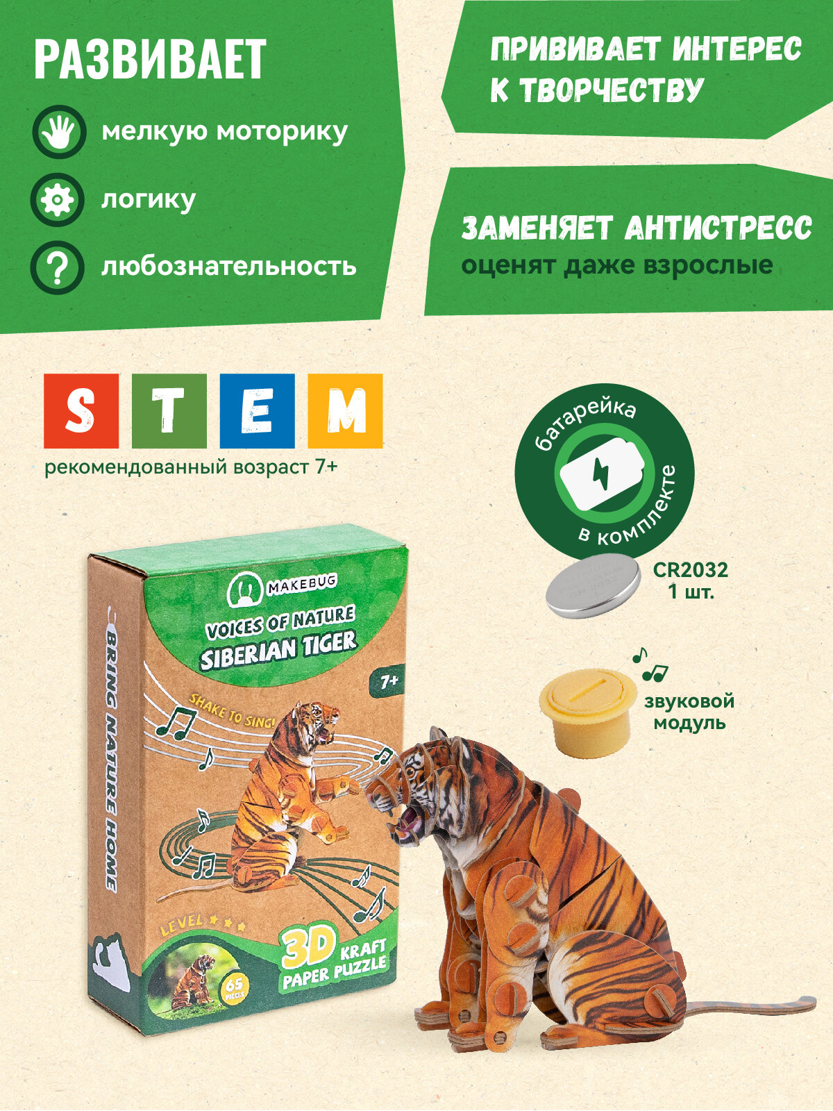 Картонный 3д пазл конструктор Makebug Амурский Тигр интересное: