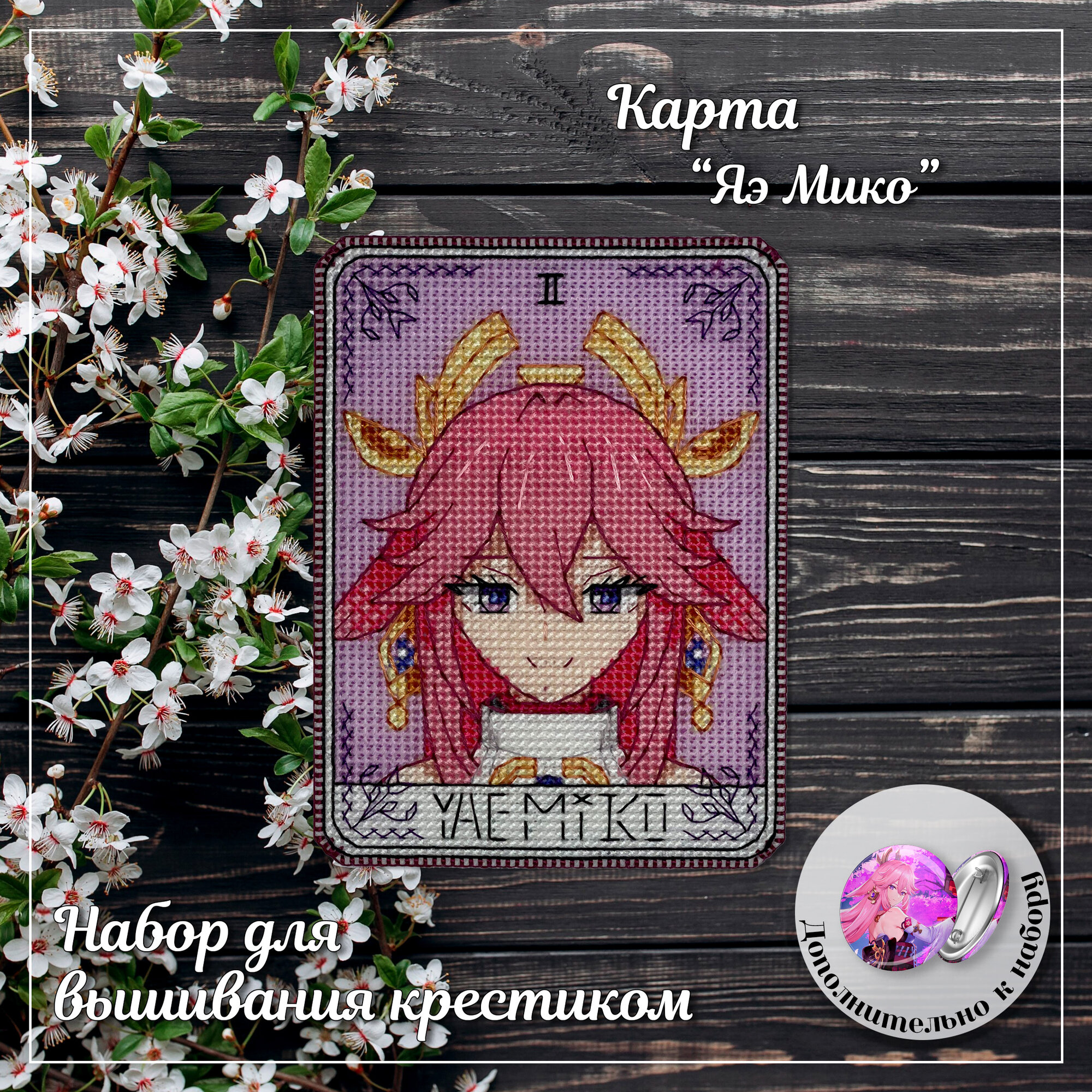 Купить Набор для вышивания крестиком на пластике Яэ Мико Геншин, карта Таро Yae Miko, размер 12,6х9,3 см, 14 каунт, значок