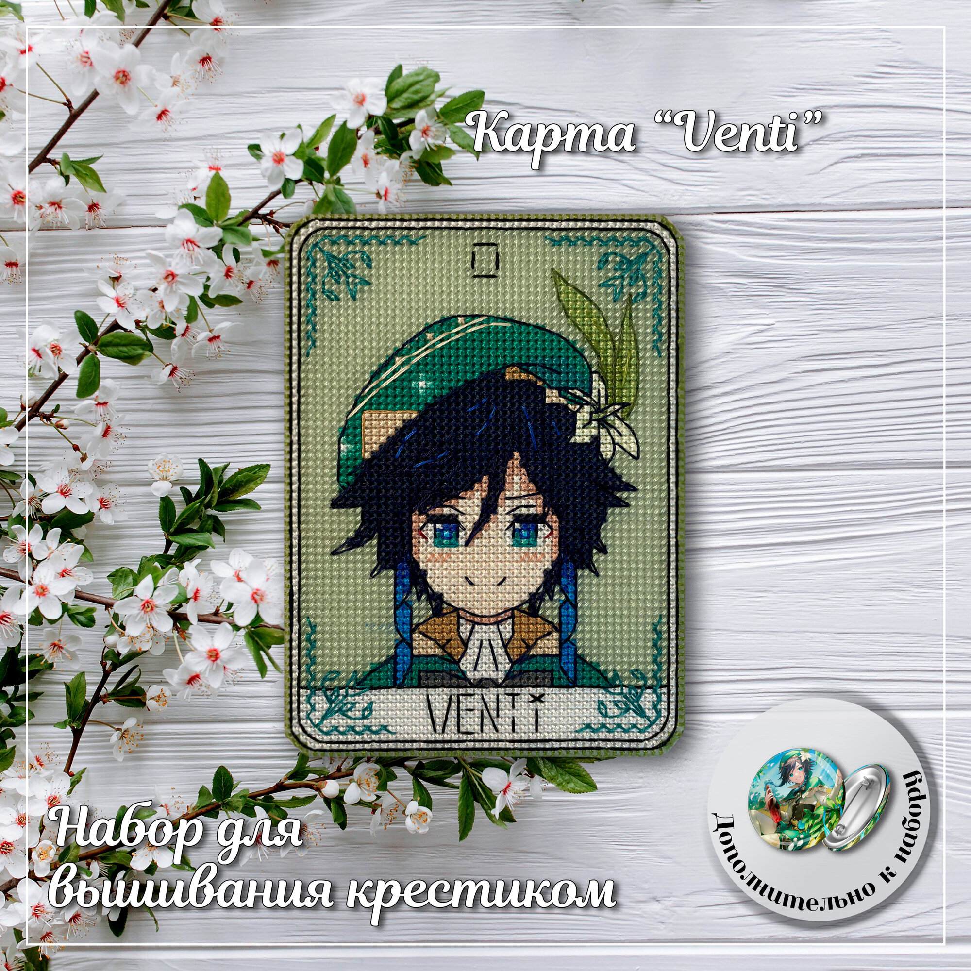 СохранитьНабор для вышивания крестиком на пластике Венти Геншин, карта Таро Venti, размер 12,6х9,3 см, 14 каунт, значок интересное: