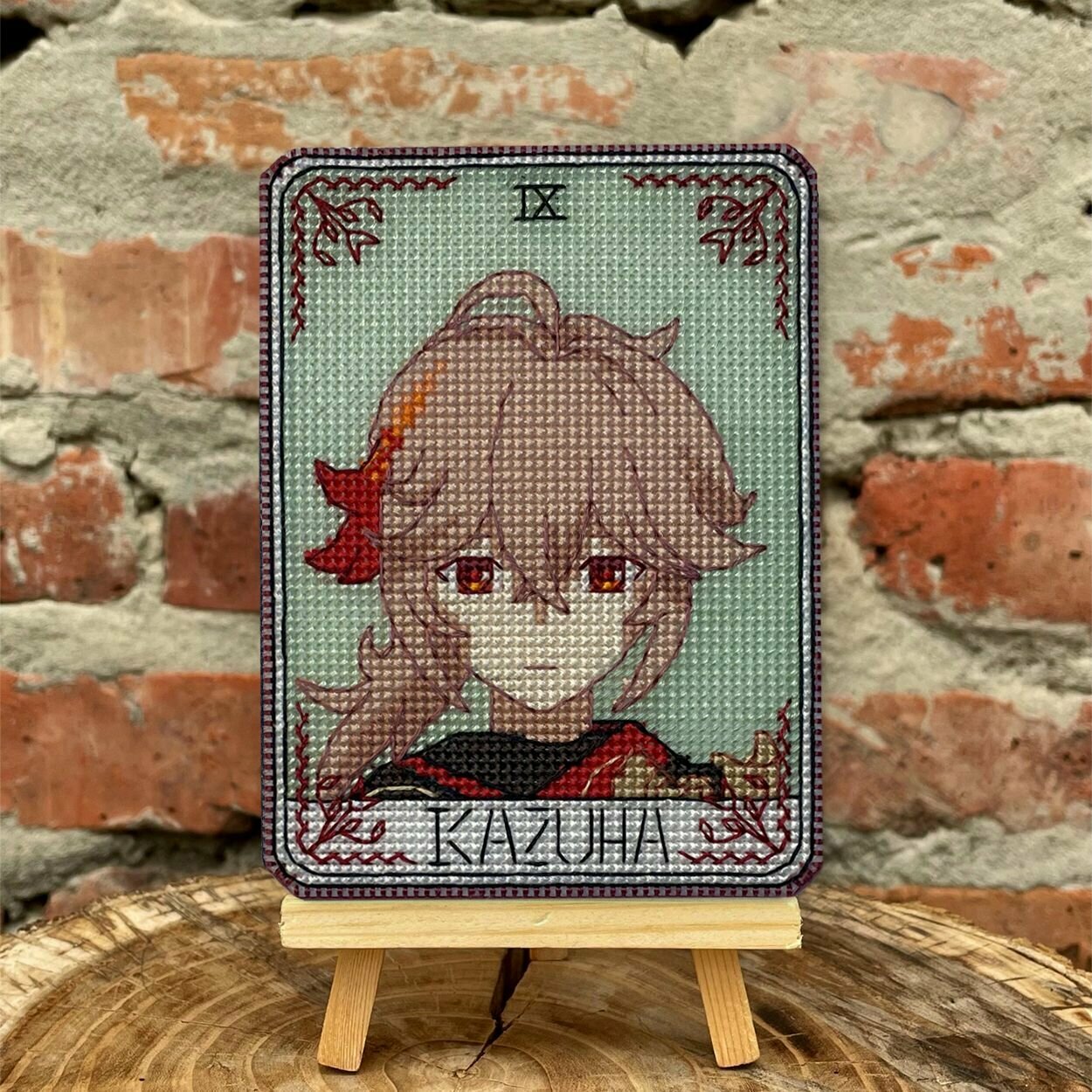 Купить Набор для вышивания крестиком на пластике Кадзуха Геншин, карта Таро Kazuha, размер 12,6х9,3 см, 14 каунт, значок