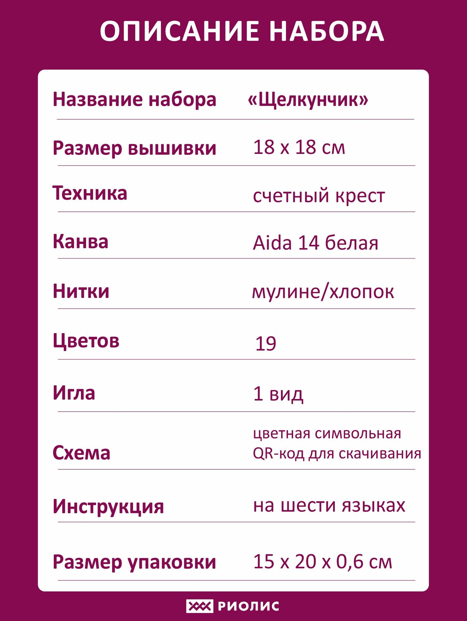 Набор для вышивания крестом Риолис, вышивка крестиком "Щелкунчик", 18*18см, 2227 интересное: